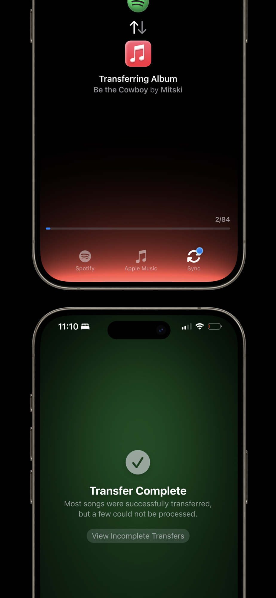 - Effortless Transfers: Move your Apple Music playlists and albums to Spotify with just a few taps.