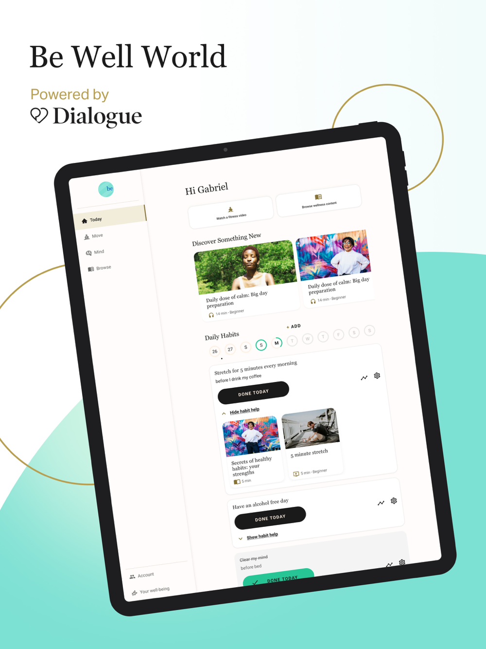 Be Well World is designed to help you and your family members build resilience and live a healthier lifestyle through personalized, evidence-based wellness resources. No matter your level of health, wellness, or fitness, Be Well World is your go-to digital resource for actionable tools and insights to improve your physical & mental well-being.