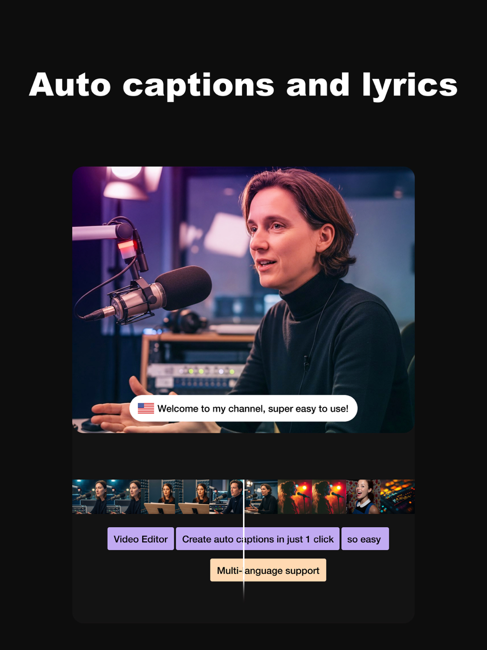 • Multi-track timeline: Easily add picture-in-picture videos, photos, stickers and text to your videos.