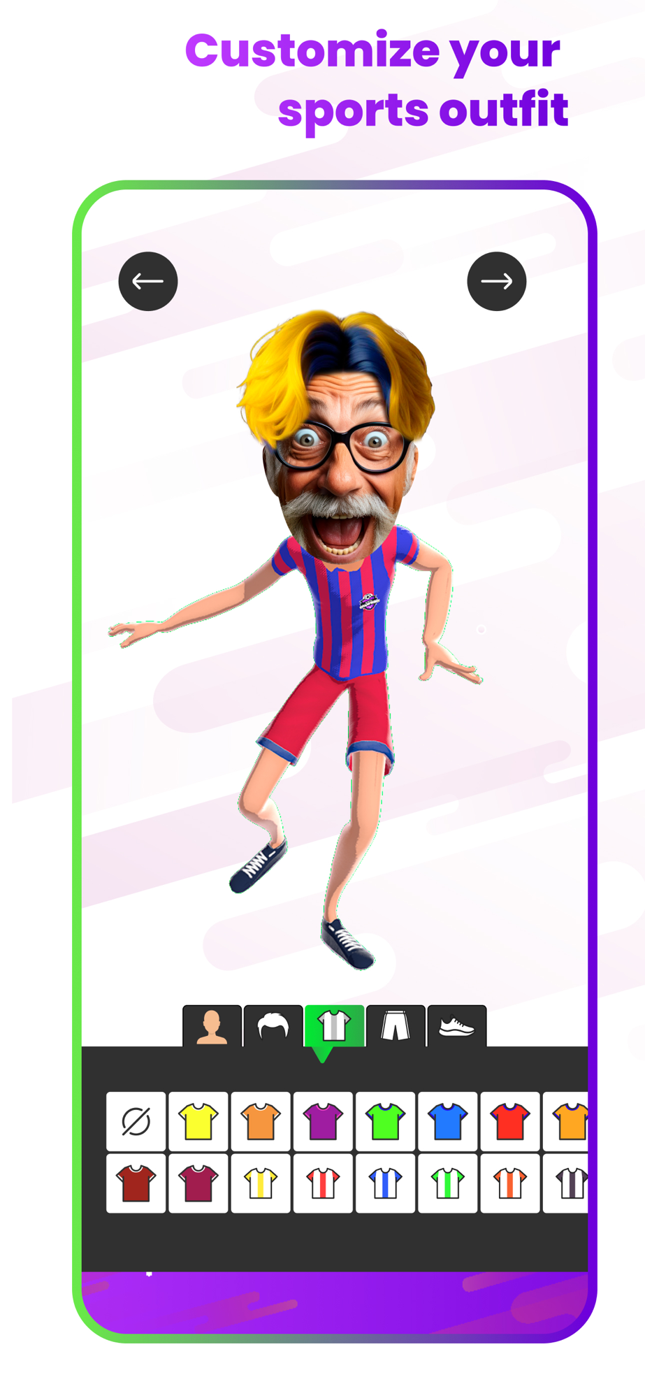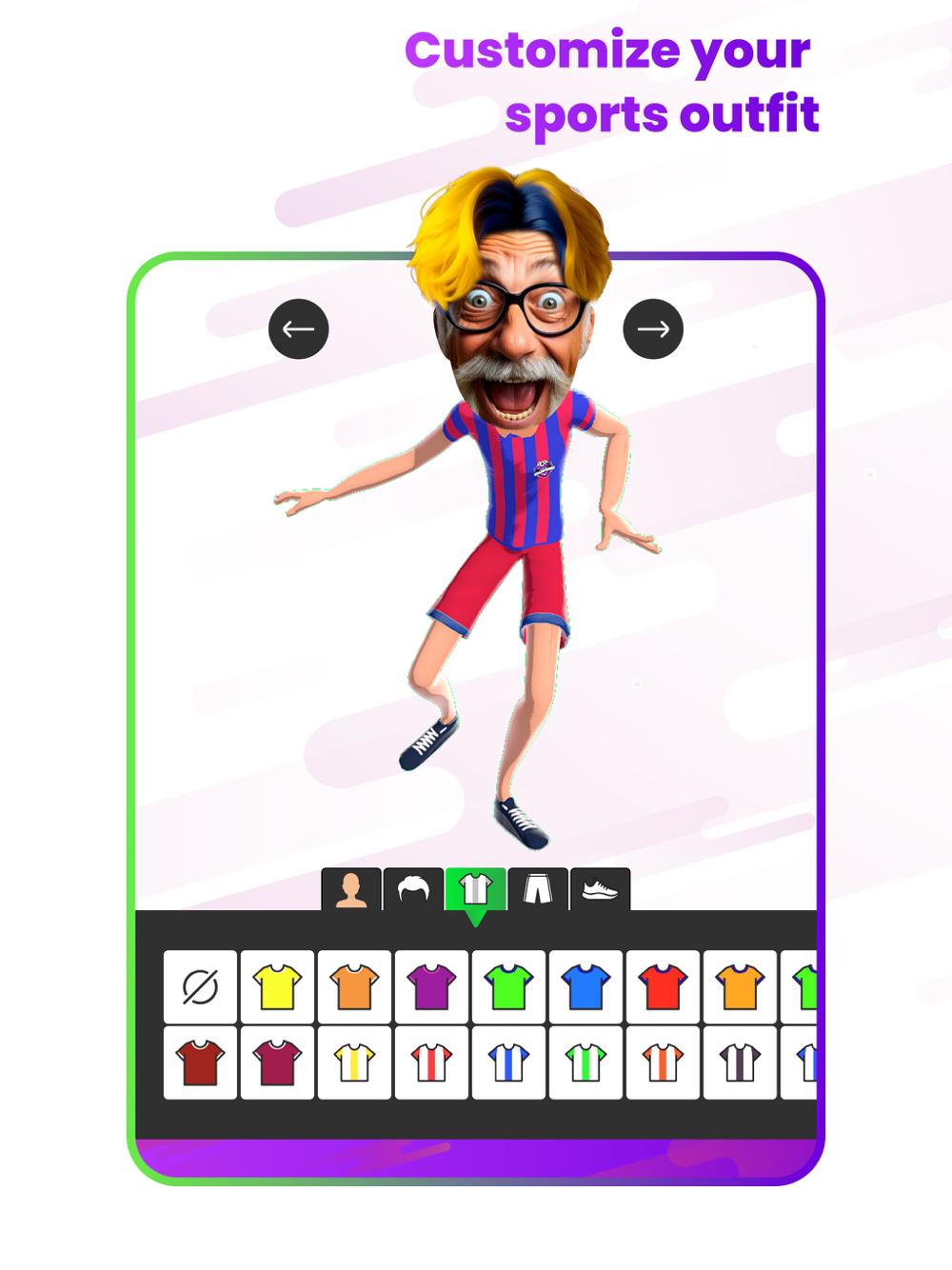 Create your 3D avatar with a wide range of customization options. Choose from different skin tones, hair styles, facial features, and more to make your avatar look just like you. Add personal touches with unique outfits, sports gear, and accessories to fit any sport or occasion.