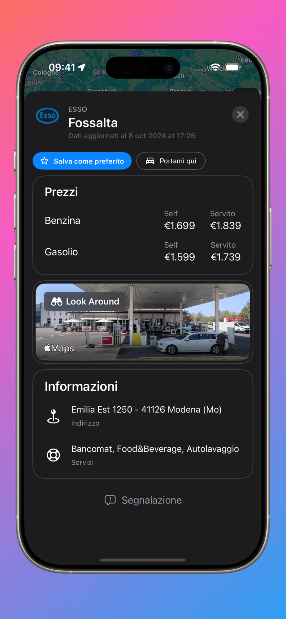 - Prezzi carburante aggiornati: consulta i prezzi attuali di benzina, diesel e altri carburanti nelle stazioni vicine.