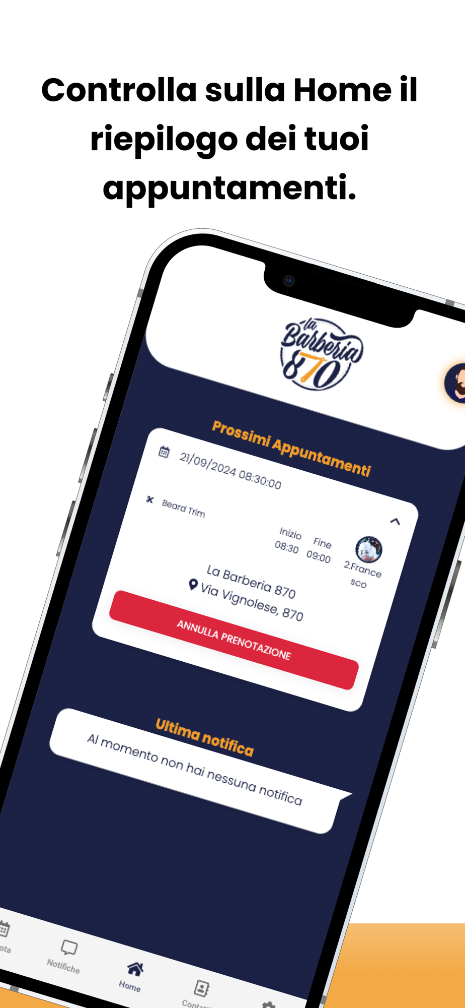 La Barberia 870 è l'innovativa app del tuo salone preferito che ti permette di: