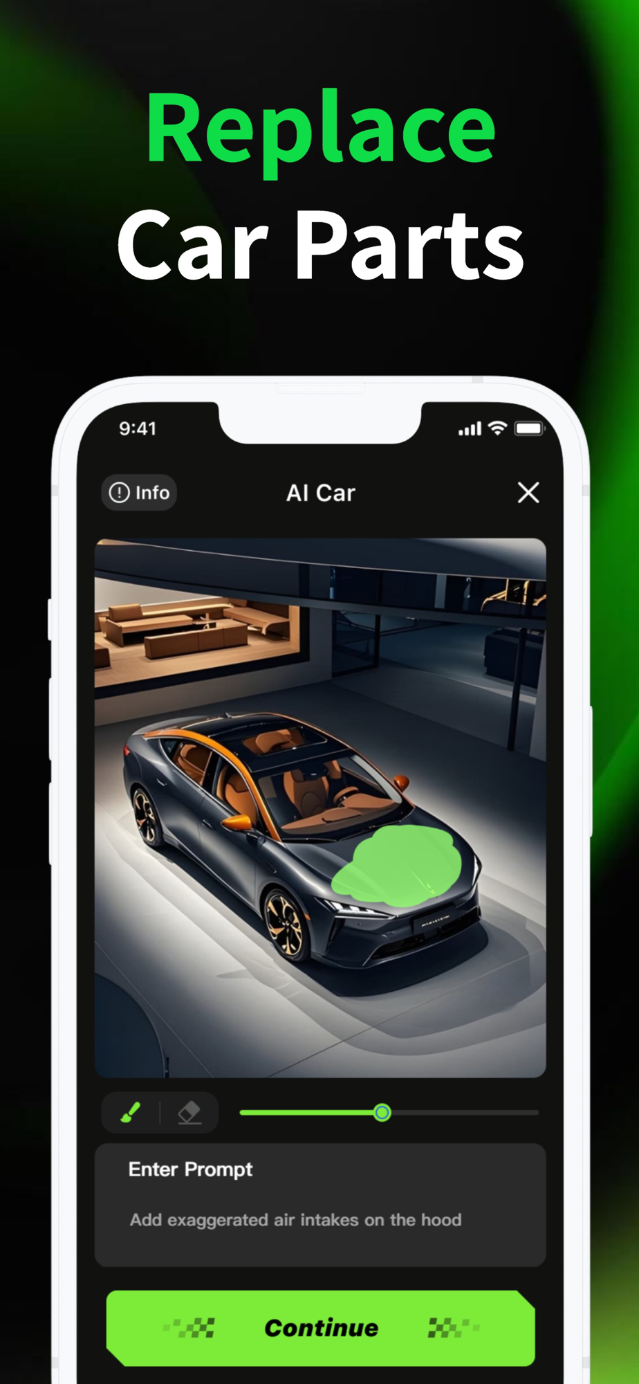 Tap or mark any area, and instantly replace colors, lights, accessories, or textures. The AI automatically blends your changes seamlessly.