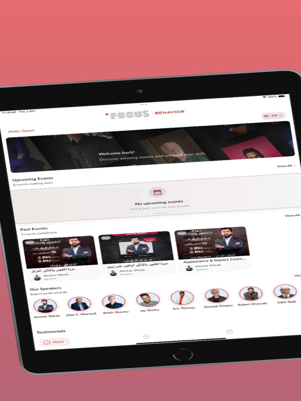 Discover and book transformative events with global public speakers. Explore upcoming trainings, and manage your bookings—all in one intuitive app.