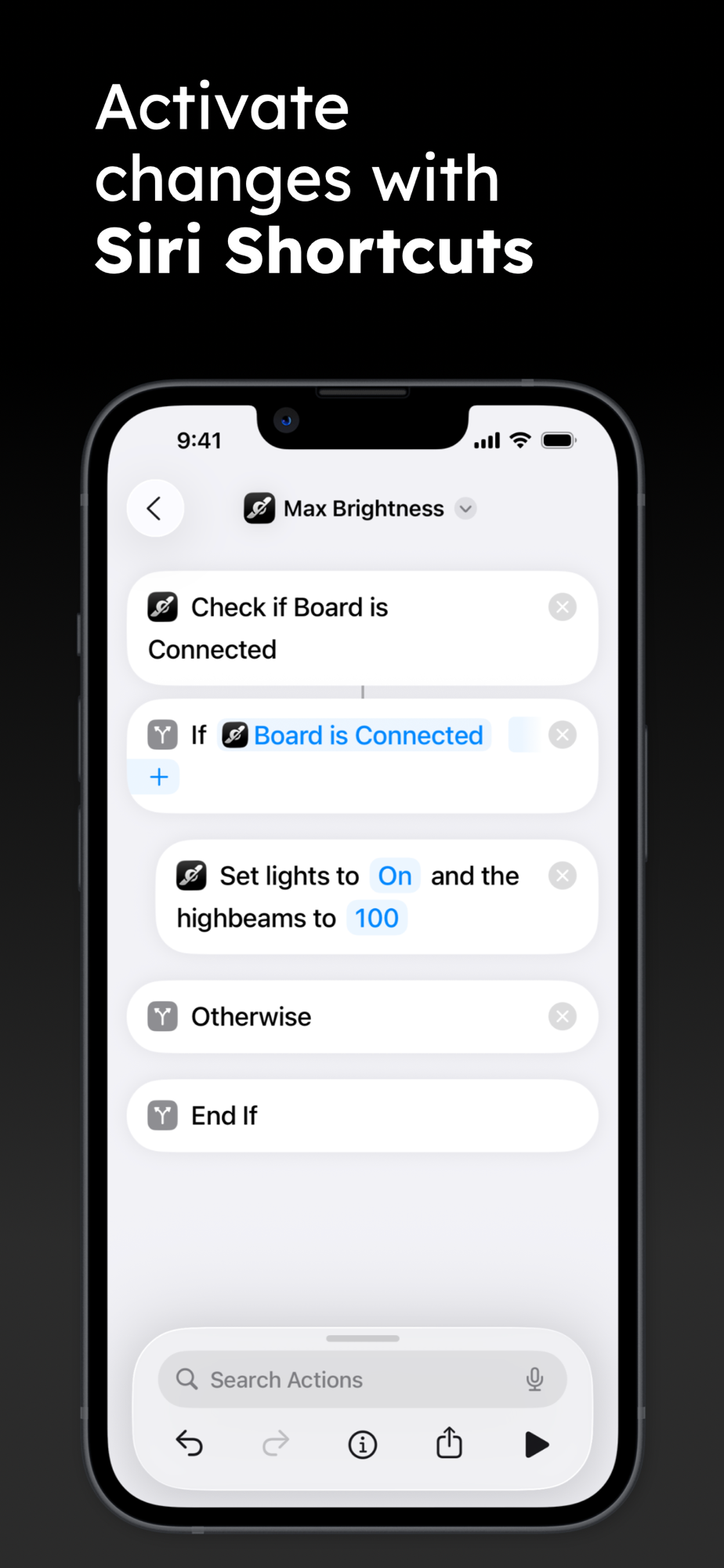 Get creative and automate various actions with Siri Shortcuts. From changing your ride mode, to toggling your headlights, make controlling your board more intuitive and convenient when you're focused on riding your board.