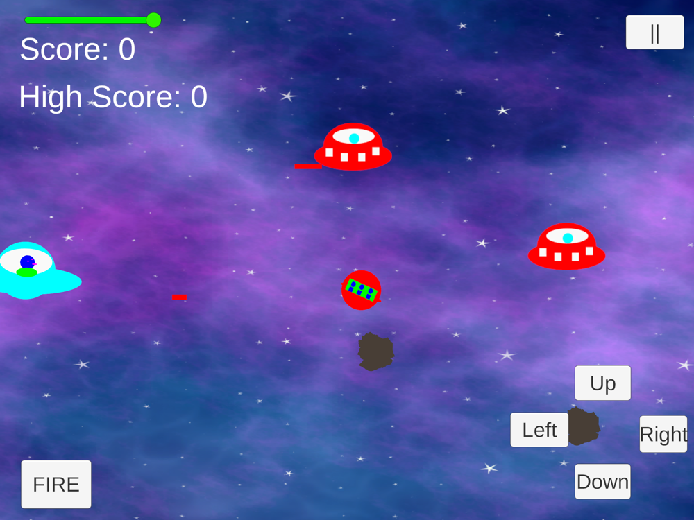 Chúng tôi thiết kế trò chơi này với nội dung cho phép bạn điều khiển một tàu vũ trụ màu xanh bằng 4 nút điều hướng trái-phải-lên-xuống và tàu vũ trụ có khả năng bắn tia laser về phía kẻ thù.