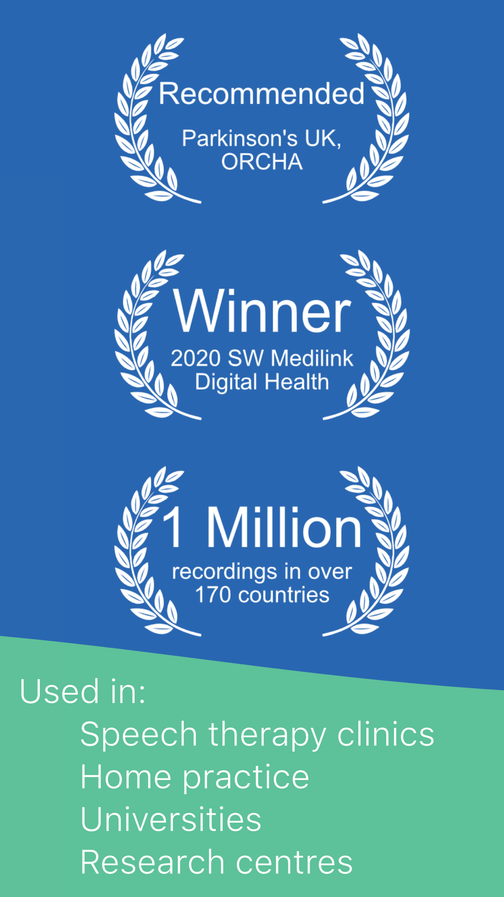 The world's favourite voice analysis app, used in speech therapy clinics, research centres, universities and homes in over 120 countries. Over 1 million recordings have been made with Voice Analyst.