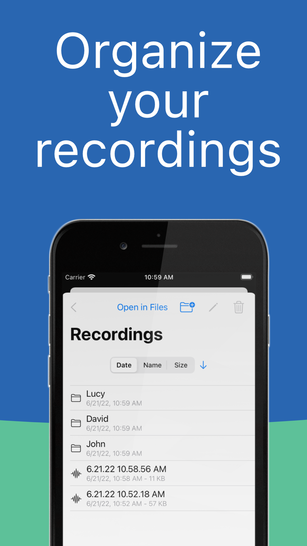 • Save your recording to your device, iCloud, Dropbox and other cloud storage.