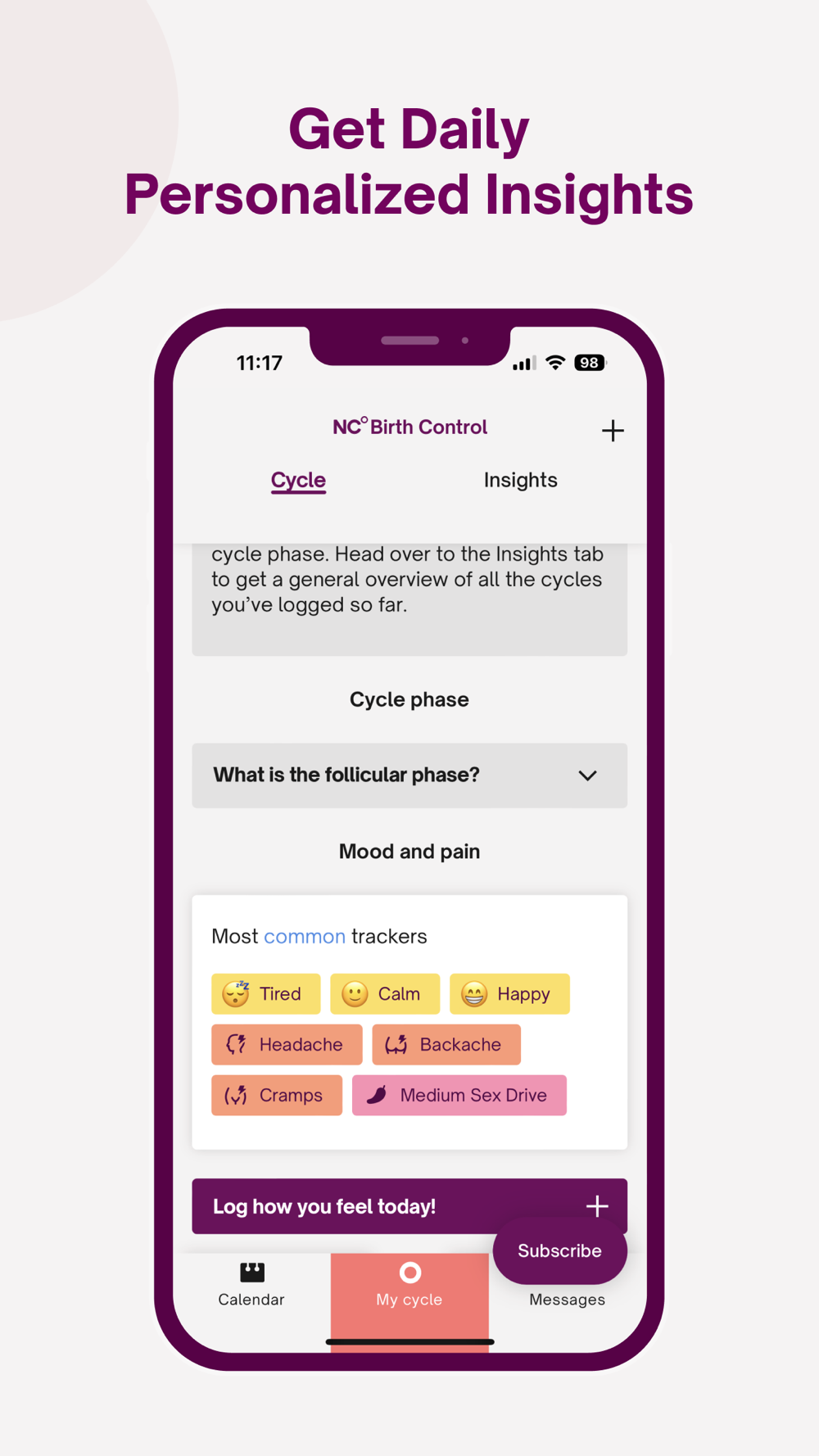 ○ Daily insights into your fertility and personal ovulatory pattern to help with your birth control or natural family planning needs.