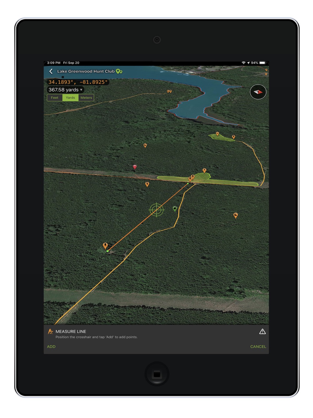 View distance and area measurements using our advanced measurement tools. Our app will give you extremely accurate map-based distances in feet, meters, and yards and area measurements in acres.