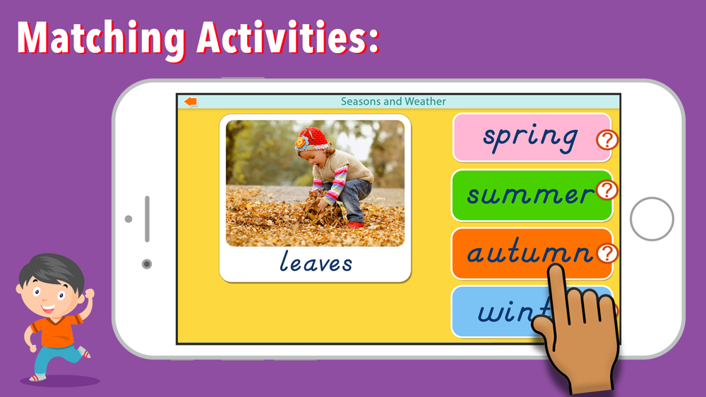 Learn about different seasons and types of weather! This app is full of educational and entertaining content for preschool & kindergarten aged children.