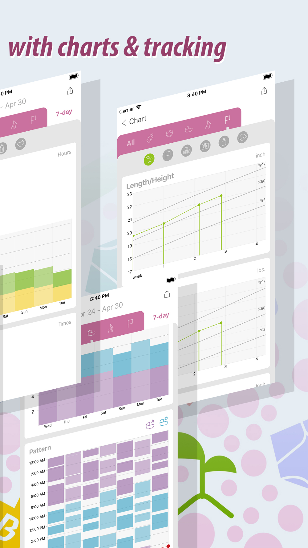 * Look at logs to compare them for a more comprehensive overview of your baby’s health and wellbeing.