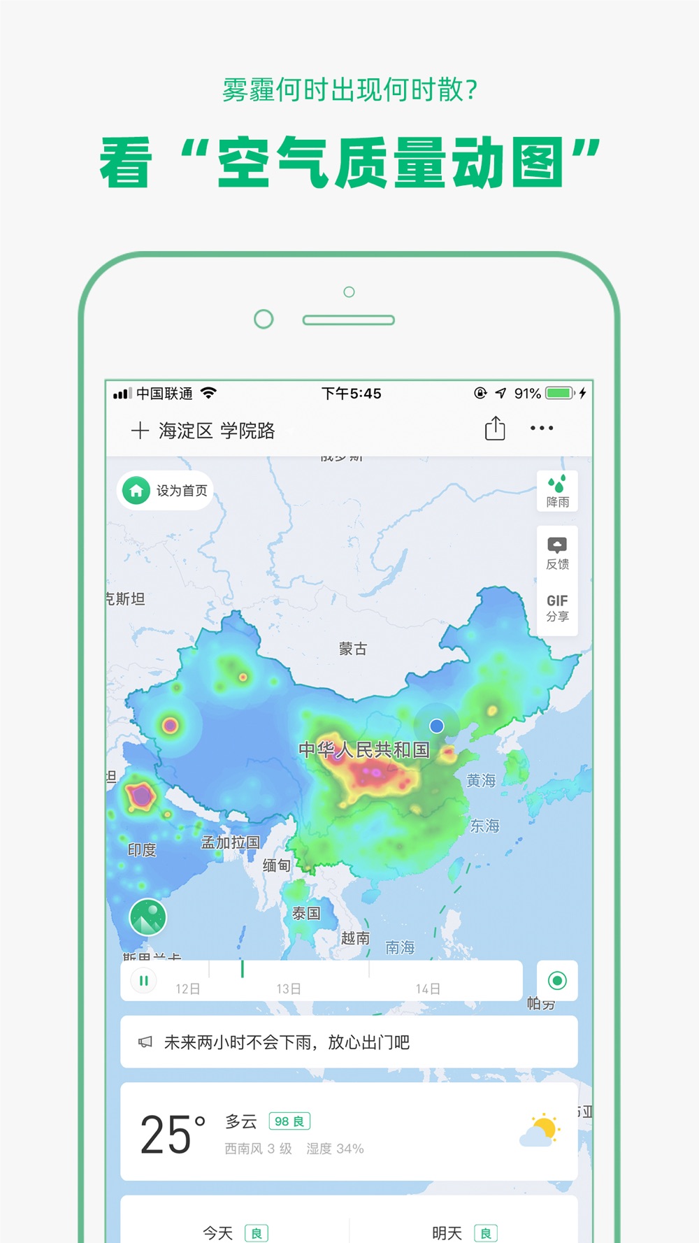 两小时内超精准的分钟级降水预报,及时调整自己和家人的出行计划。