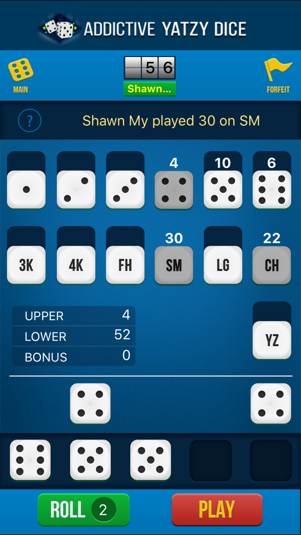 A game of Yatzy!! consists of 13 rounds. In each round, you roll the dice and score the result in one of 13 categories.You must score exactly once in each category, so skill and judgment are required as the game progresses and your options start to run out. The aim of the game is to make the biggest score you can from the 13 rounds.
