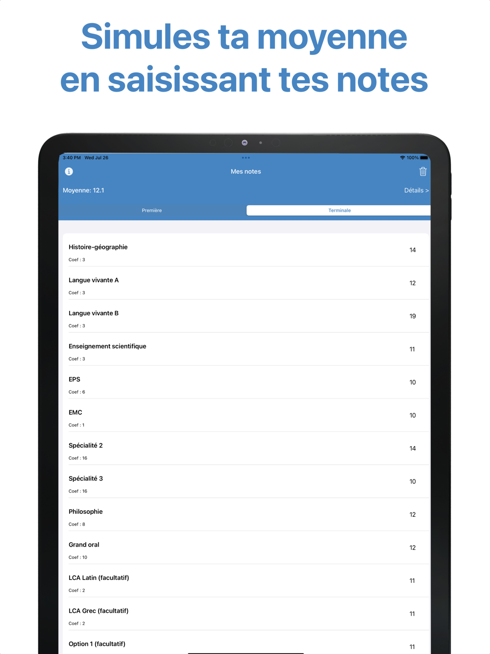 Notre application est faite pour vous ! Grâce à "Simulateur de Moyenne pour le Bac", vous pouvez anticiper votre résultat au bac en rentrant vos notes de première et de terminale.