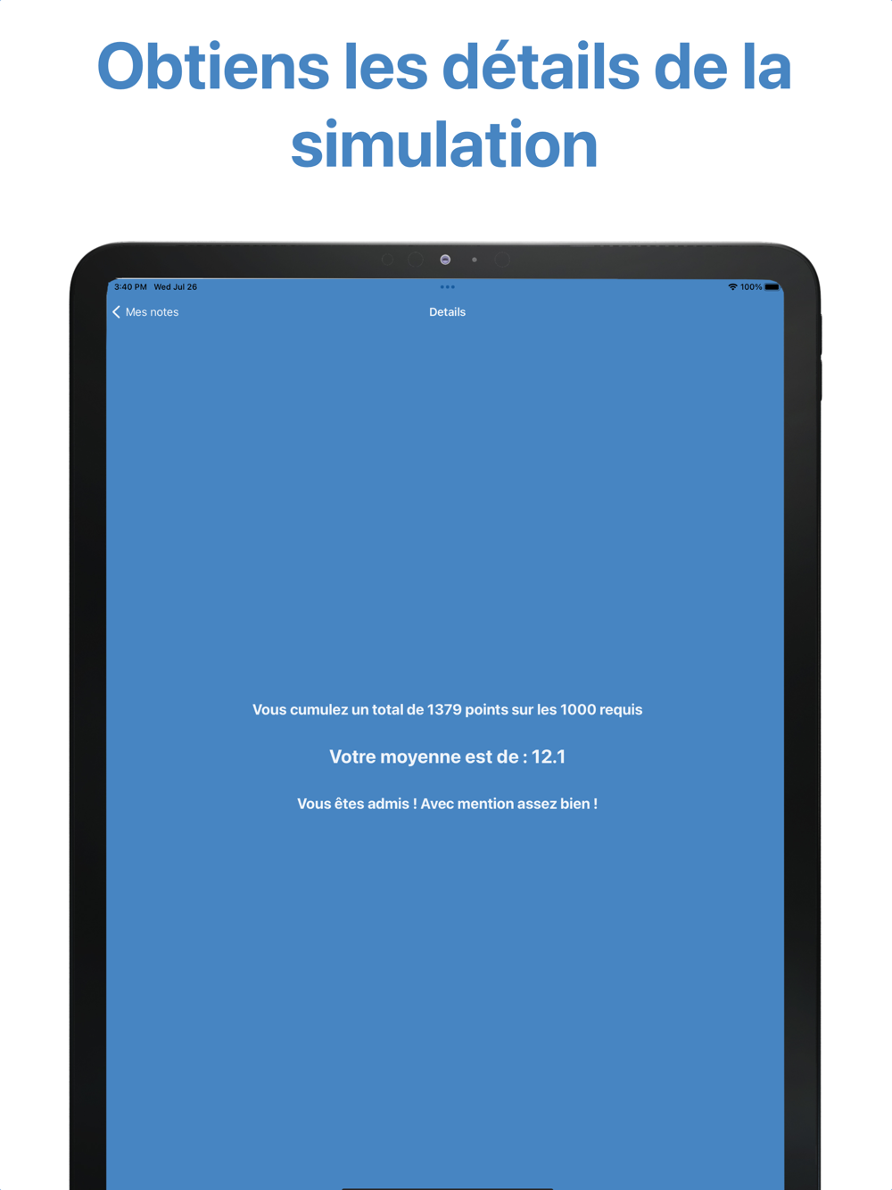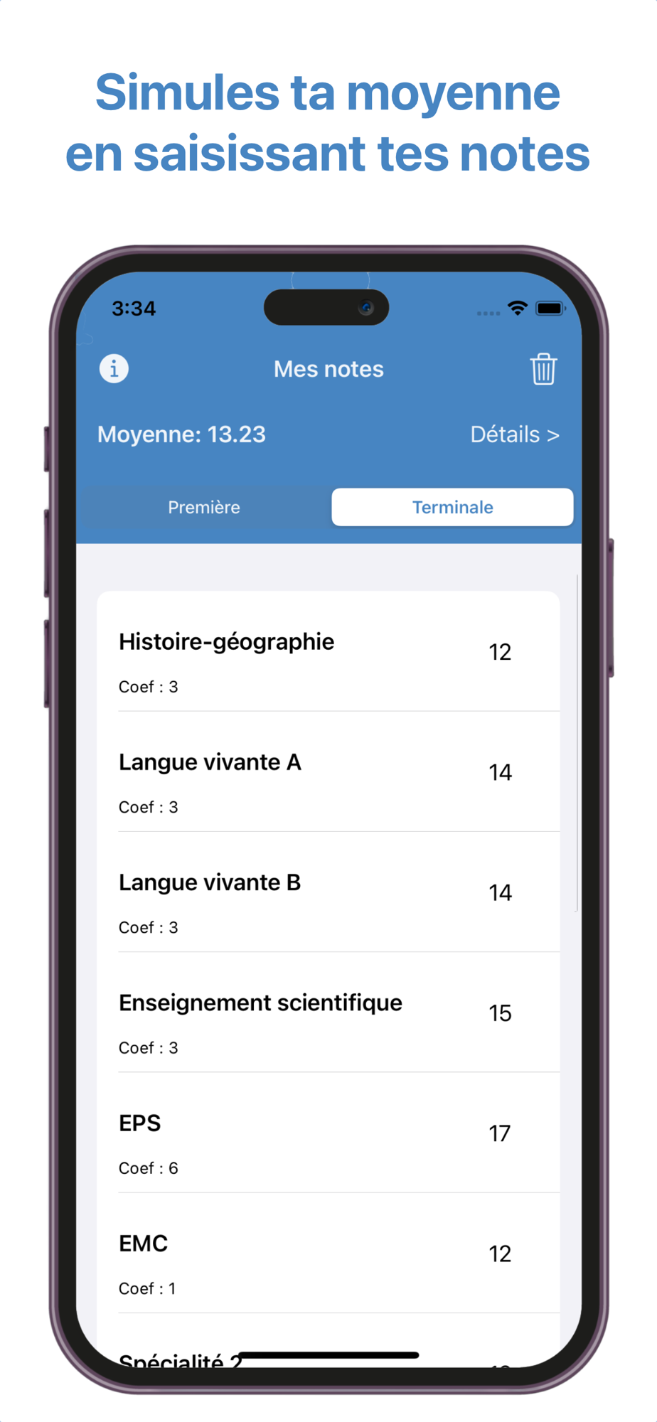 Et bonne nouvelle ! Vos notes sont sauvegardées directement dans l'application, vous permettant de suivre votre progression tout au long de l'année. Ainsi, vous saurez immédiatement si vous êtes sur la bonne voie pour obtenir le précieux sésame... ou si vous avez besoin de mettre un petit coup de collier !