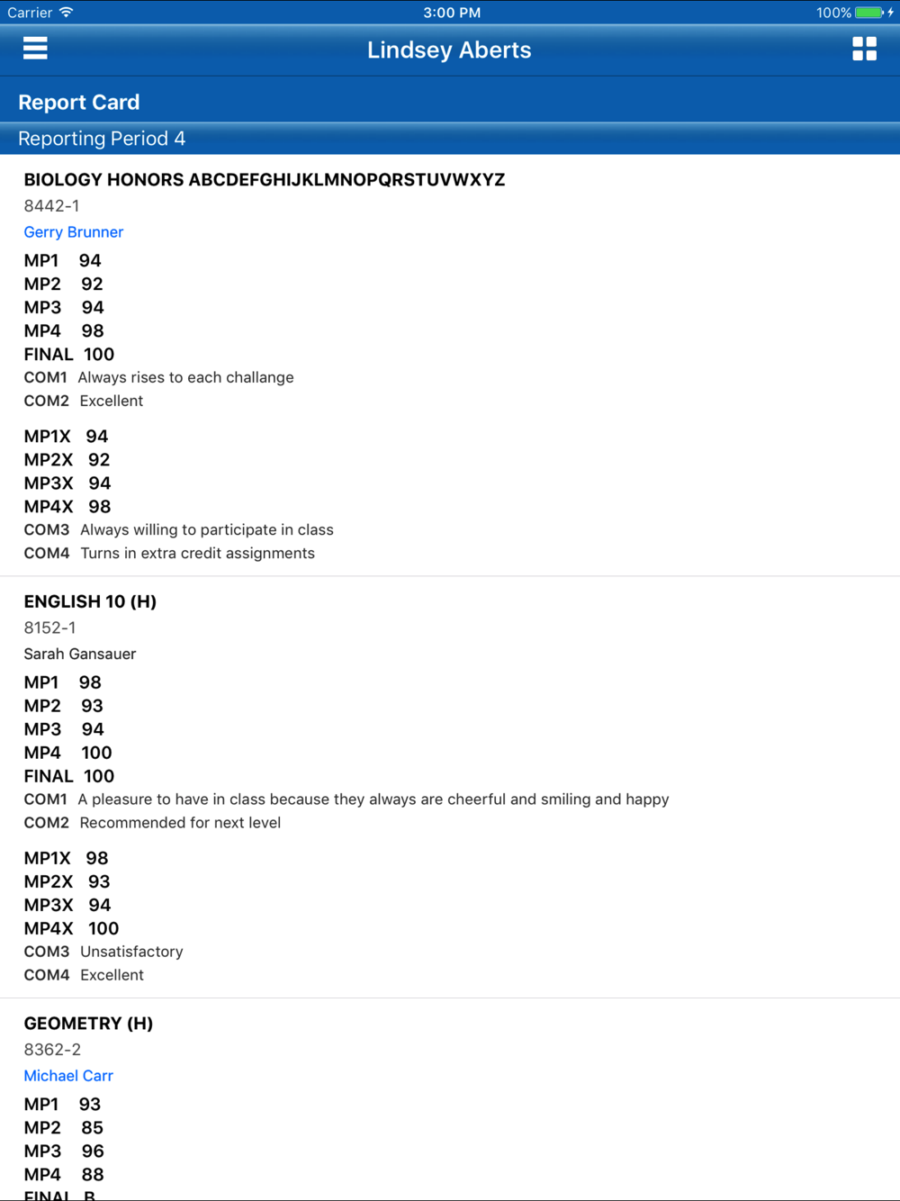 Grades on the Go: Parents can stay up-to-date on student success through detailed comments, class grades, and interim progress reports and report cards.