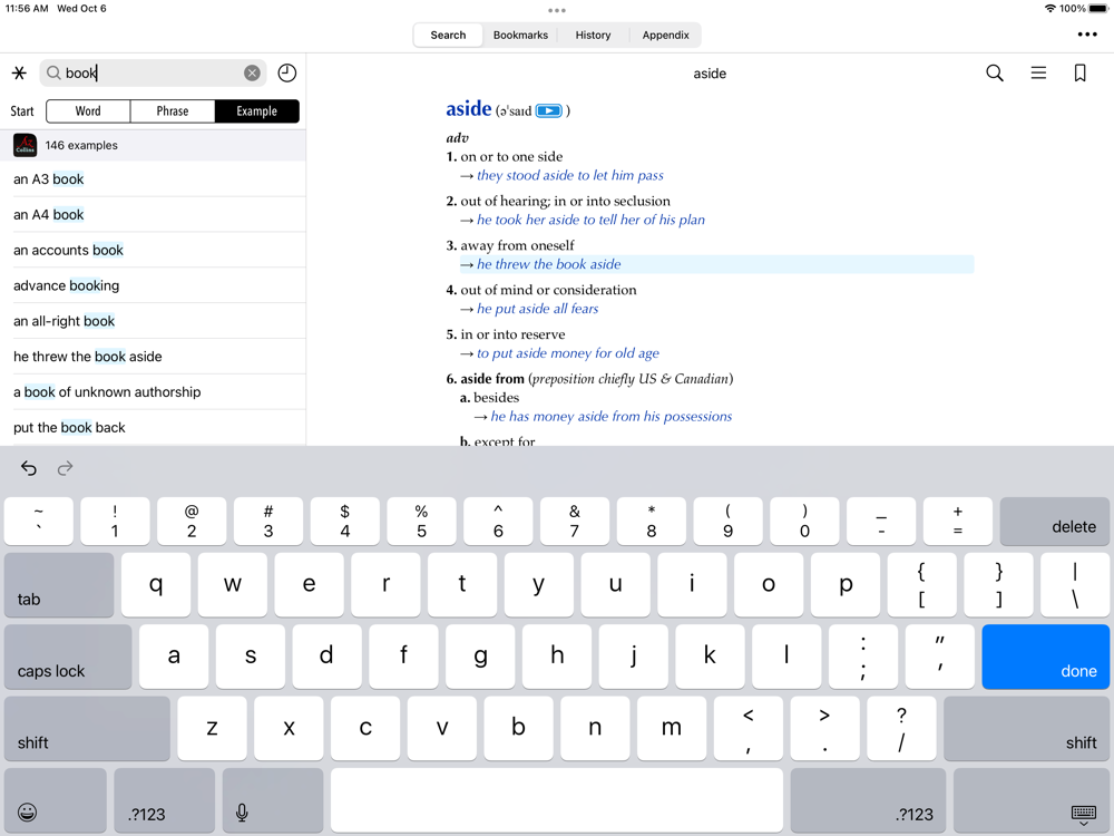 -‘Jump’ feature – touch any word anywhere in the dictionary to go to the definition
