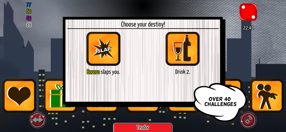 Drink or Doom is a drinking game placed in a comic book setting. Gather your friends (up to 12 players), get some beverages you usually drink on your night out and start the night with a blast.