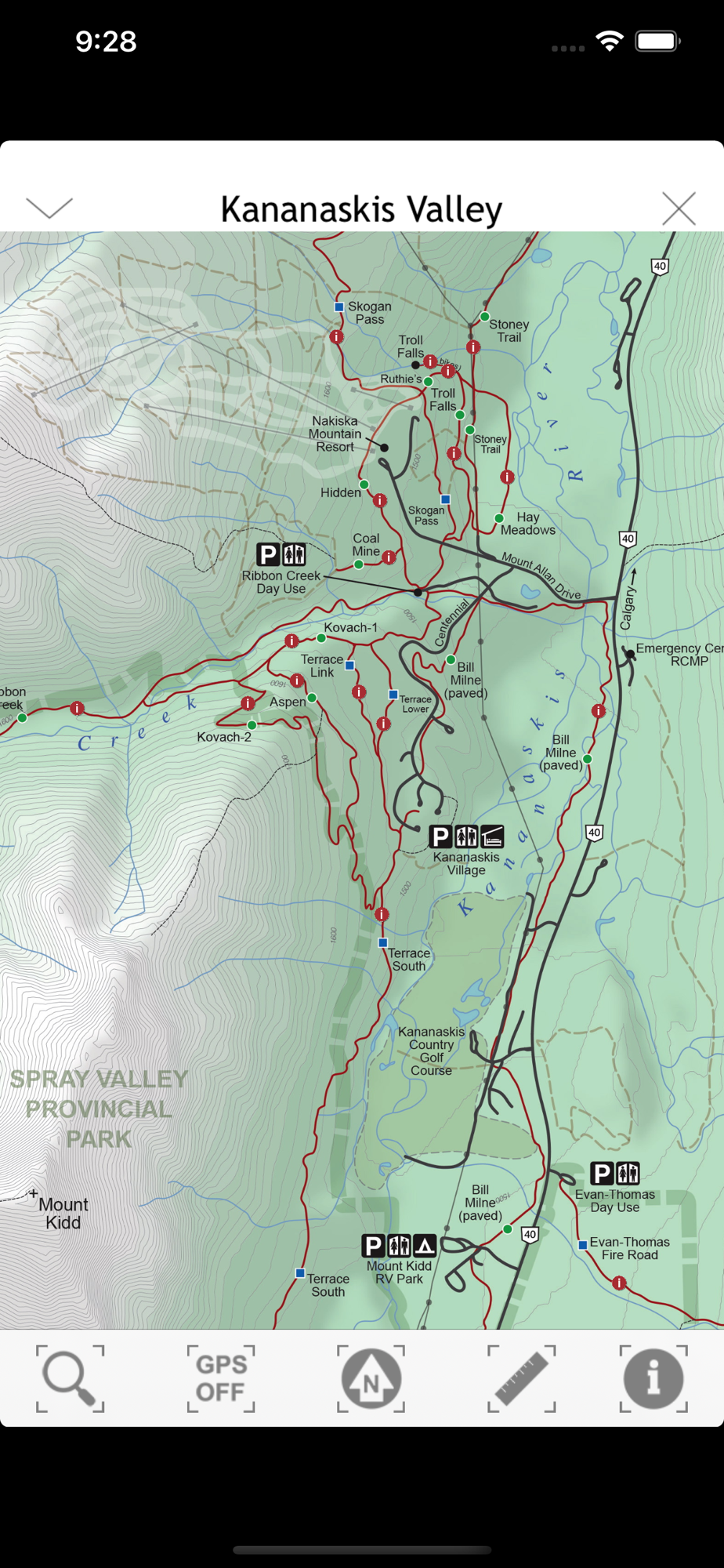 Kananaskis Country is located 30 minutes west of Calgary, boasting an abundant network of trails accessible by, and open to, mountain bikes. The area has something to offer every rider level and ability, including paved pathways for cruising on, big alpine x-country rides, and downhill gravity assisted trails. This app provides all the information you need to access these trails and with the location tracking enabled, you’ll know exactly where you are at all times!