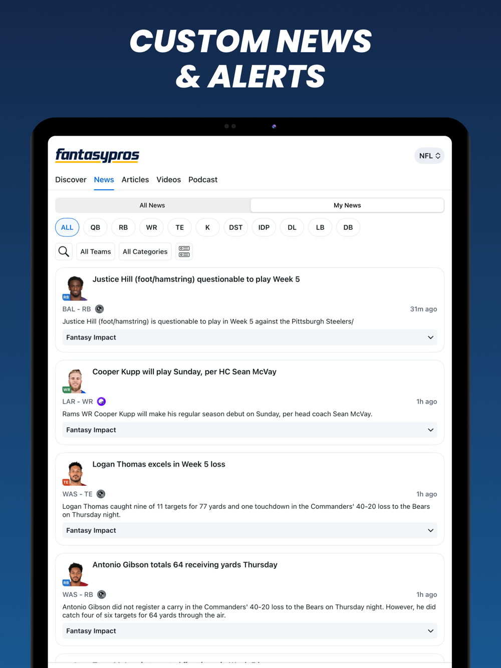 FantasyPros - Fantasy News, Rankings & Scores is your one-stop destination for keeping a finger on the pulse of the fantasy sports world and your fantasy teams.