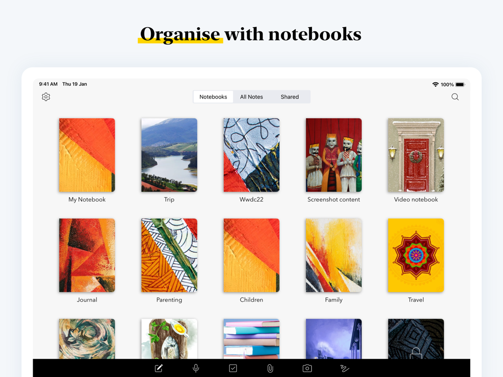 - Use Notebook alongside other apps using drag and drop, split view, slide over, multiple windows and stage manager