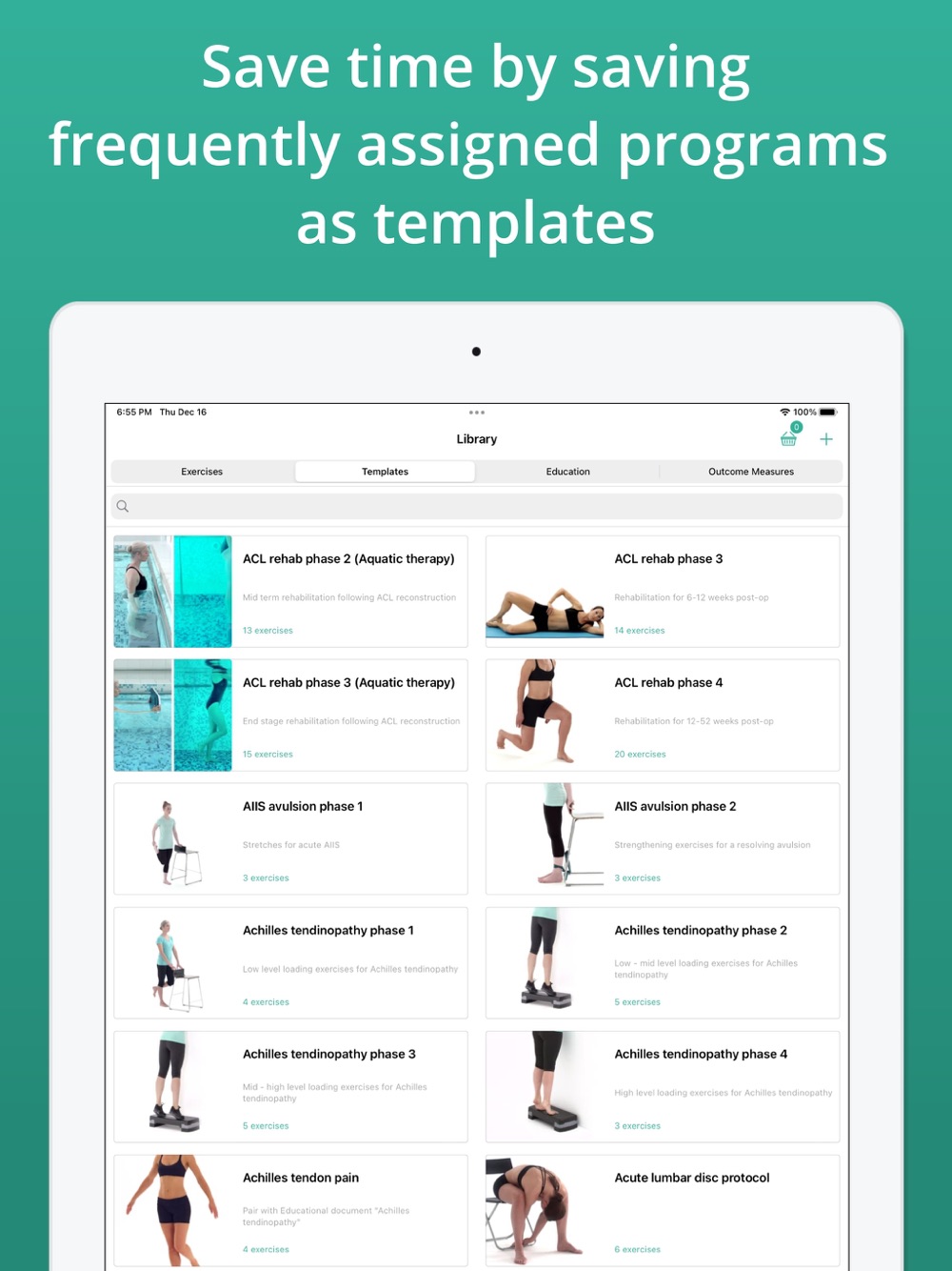 Physitrack ships with over 10000 exercises in HD video, ready-made templates, educational content and industry leading outcomes surveys.