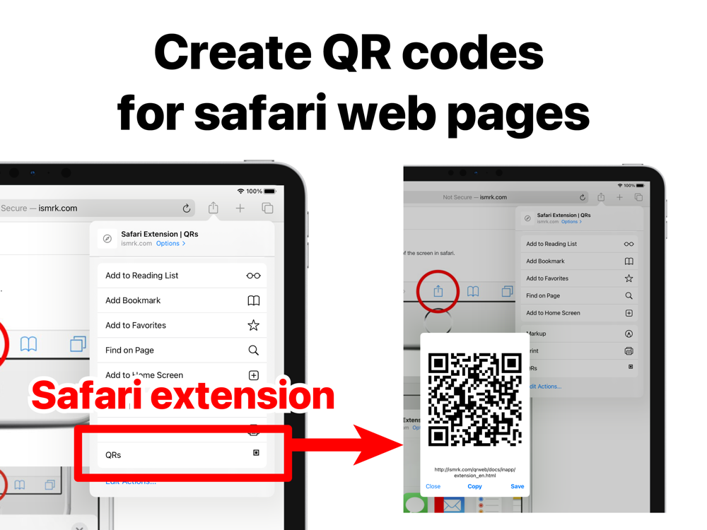 Quickly create a QR code for any web page displayed in Safari.