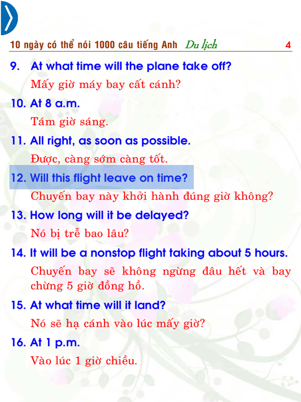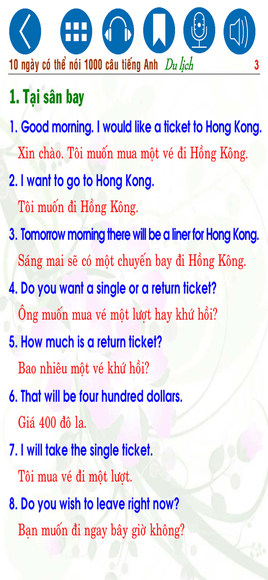 Quyển sách “10 ngày có thể nói 1000 câu tiếng Anh – Tiếng Anh du lịch (In 10 days can say 1000 English Sentences – Travel English)” gồm 126 trang được thực hiện theo tiêu chí “Học tiếng Anh mọi lúc mọi nơi” khi trong tay có chiếc điện thoại thông minh. Bản thân sách SmartBooks của chúng tôi đã rẻ hơn sách giấy nay chúng tôi giảm thêm giá bán SmartBooks để kích cầu đọc sách và sử dụng sách Smartbooks trong kỷ nguyên số hiện nay. Sách được tích hợp âm thanh (audio) vào trong sách, đánh dấu từng câu khi đọc, khi cần nghe lại câu vừa mới đọc hay câu nào đó thì bạn chỉ cần chạm tay vào câu đó thì sẽ phát âm thanh; Ngoài ra SmartBooks còn có tính năng thu lại giọng đọc (giọng của bạn tập đọc câu vừa học, vừa nghe) của bạn bằng cách nhấn vào nút Recorder (icon Micro), khi bạn nhấn vào icon “Headphone”, “Nghe và viết”, xuất hiện màn hình có rất nhiều tính năng giúp bạn nghe và viết lại câu vừa nghe bằng phím hay bằng tay,… Sách được thiết kế để sử dụng mọi lúc mọi nơi khi trong tay bạn có chiếc Smart Phone. Đây là một bước đột phá của chúng tôi trong thời đại công nghệ số nó sẽ giúp các bạn rất nhiều trong việc học và đọc sách.