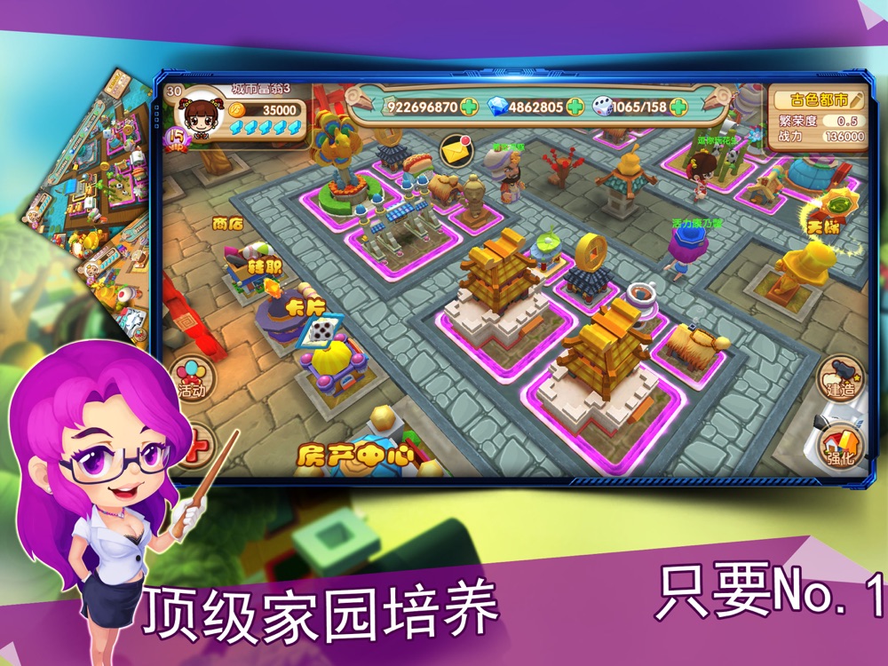 游戏内包含大量的关卡及地图,耐玩持久。想要从只拥有一个空地的贫民到富有四海的大富翁吗,努力地收集卡片、建筑就可以实现从屌丝变富豪的梦想了!