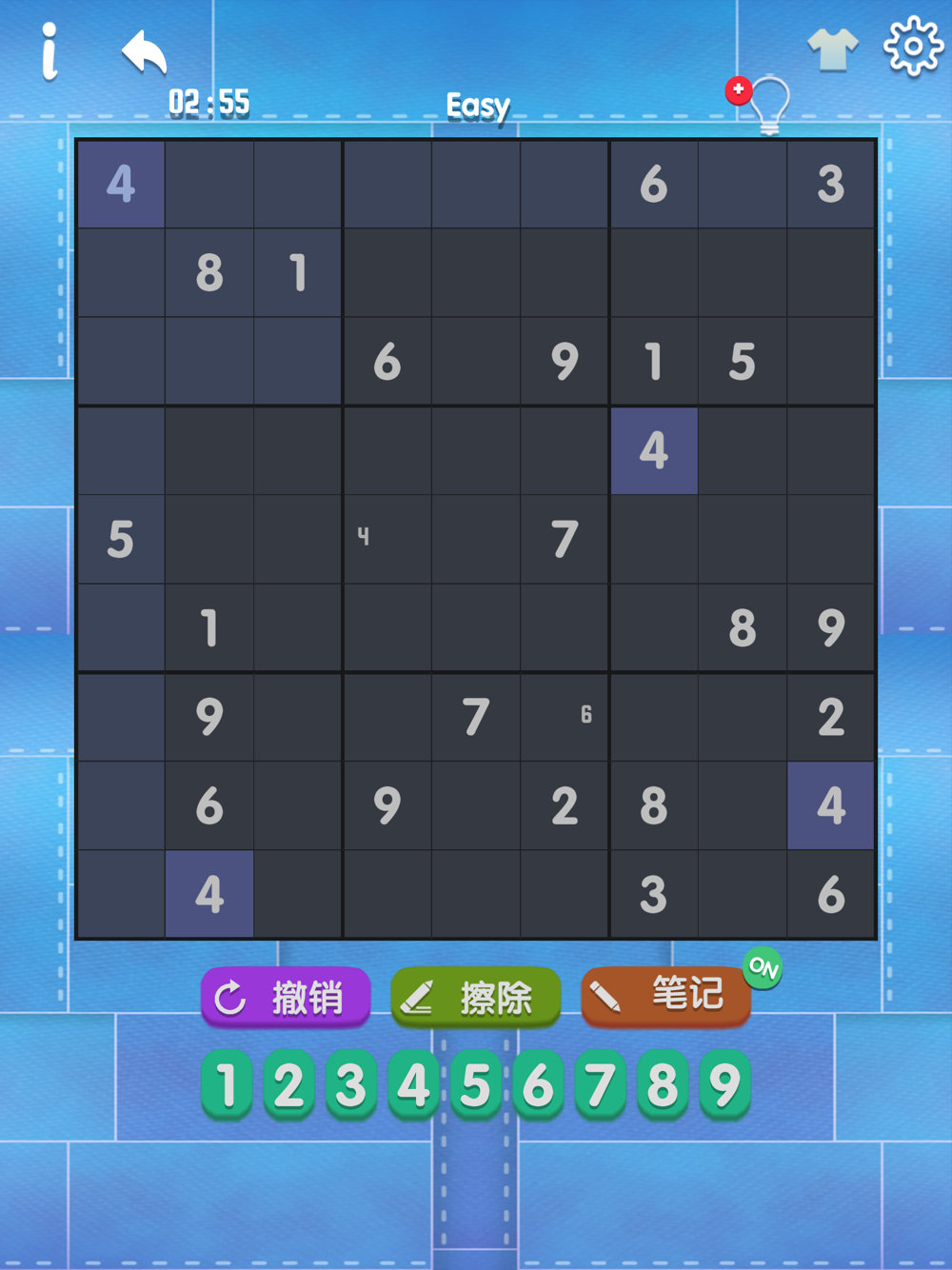 Choose any level you like. Play easier levels to challenge your brain, or try expert levels to give your mind a real workout. Sudoku Solohas some features that make the game easier for you: hints, auto-check, and highlighted duplicates. You can use them, or complete the challenge without their help – it's totally up to you! What's more, in Sudoku Solo each puzzle has one solution.