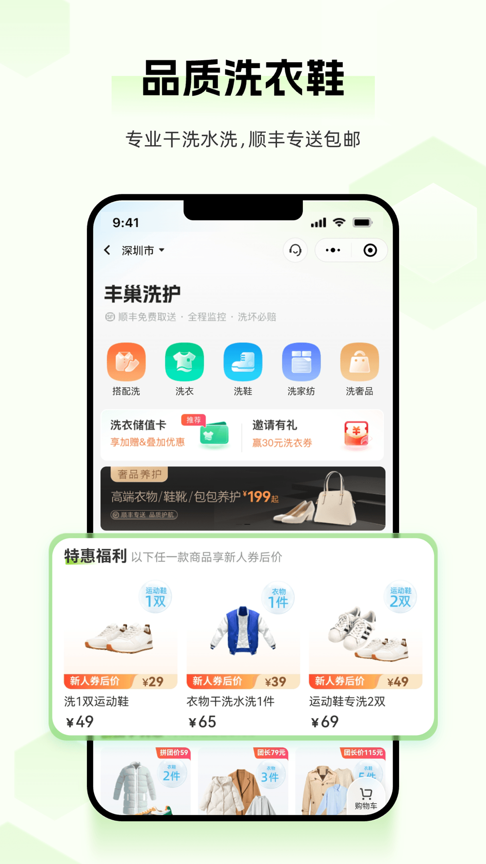- 丰巢洗护:品质洗衣洗鞋,顺丰专送包邮,提供专业干洗水洗服务、定制化洗护方案。