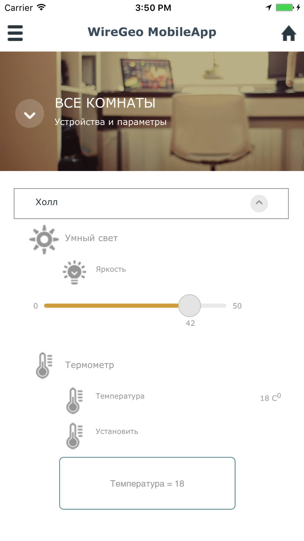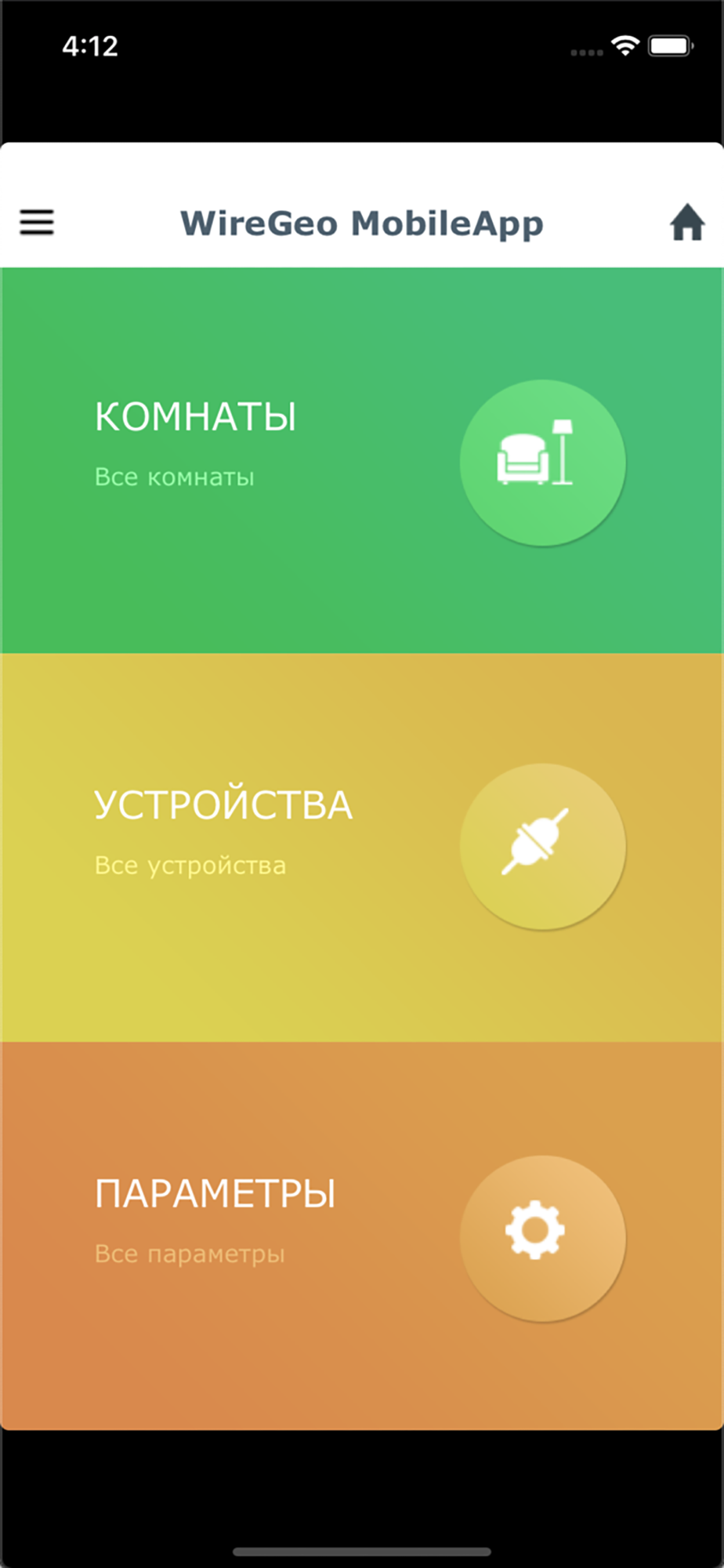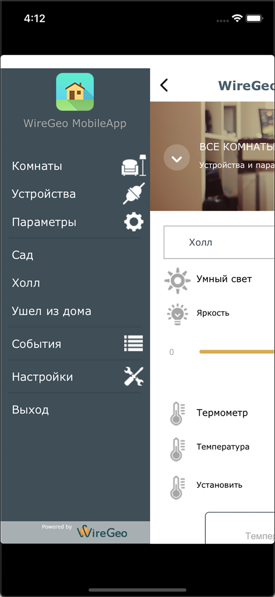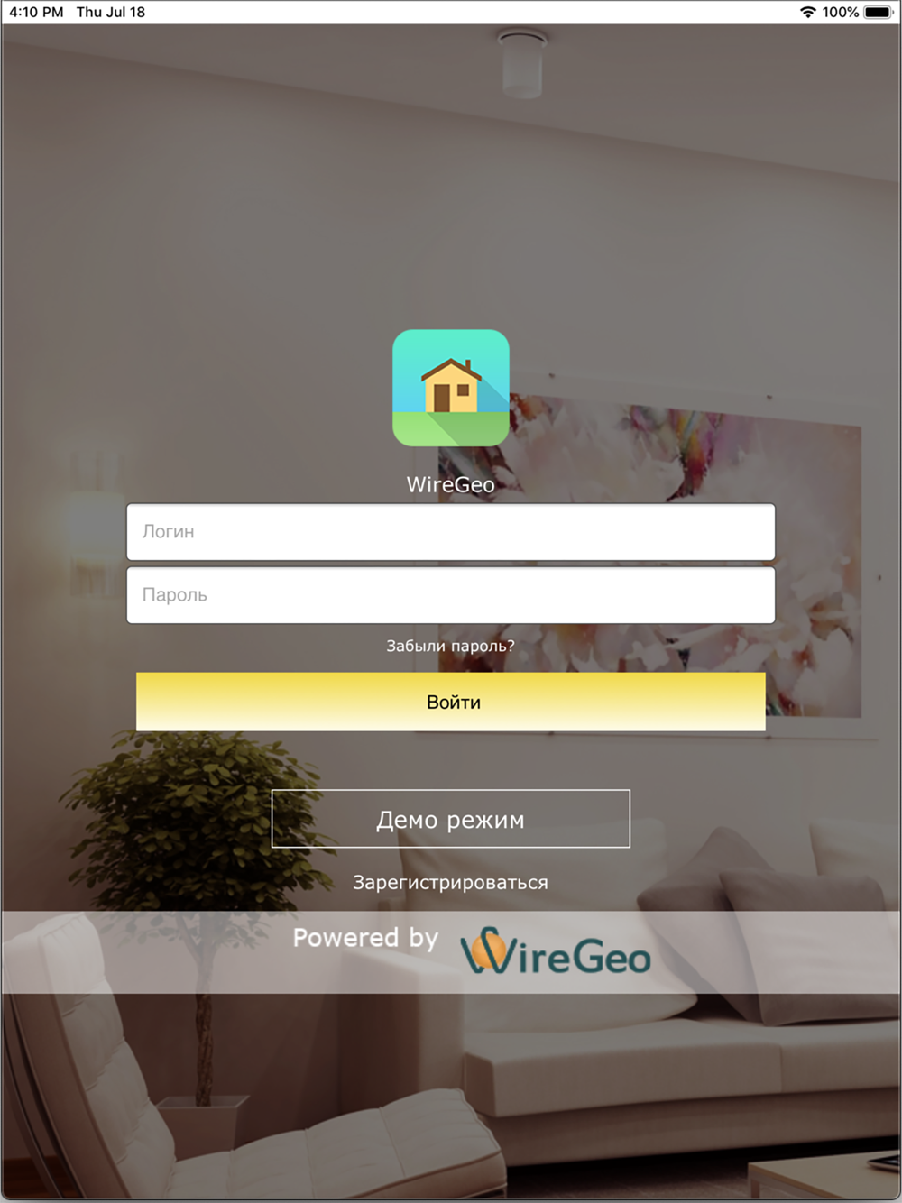 If you still do not have WireGeo account, use "Demo" button to get look and feel of how you can control your Smart Home using this app.