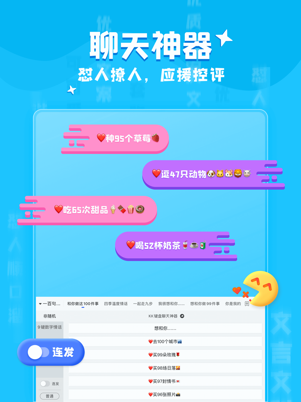 •【语弹-一键连发免打字】连发刷屏,扣字怼人,游戏特殊代码,表白套路,追星打榜,手残党福音