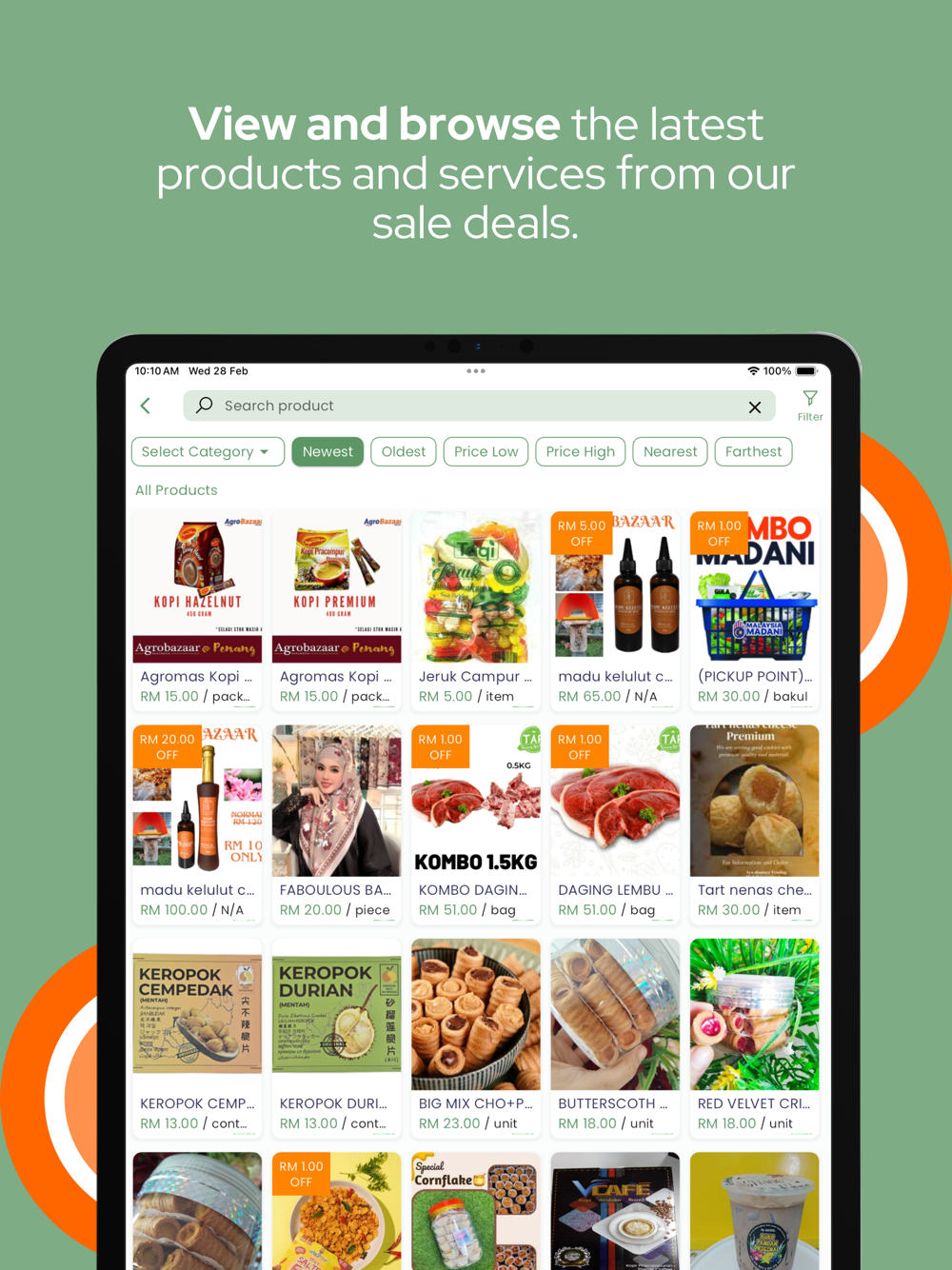 Search and select from a variety of agro-based products, e-books, shops, services and even agro-based homestays from 100% genuine Malaysian sellers.