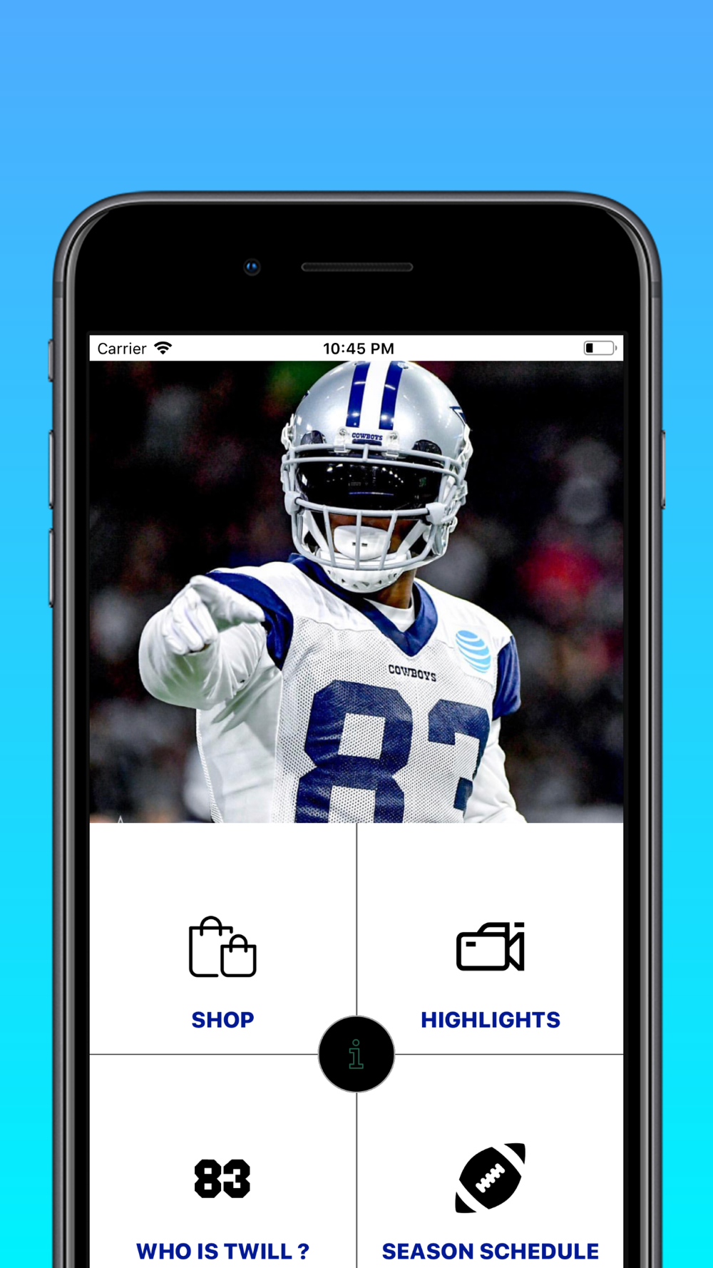 Get up to date information on the Dallas Cowboys receiver Terrance Williams and see cool features within the app such as shopping his latest merchandise , seeing his highlights and even keeping up to date with the Dallas Cowboys division. Oh not to mention the interesting bio on Terrance that he personally wrote hisself !!