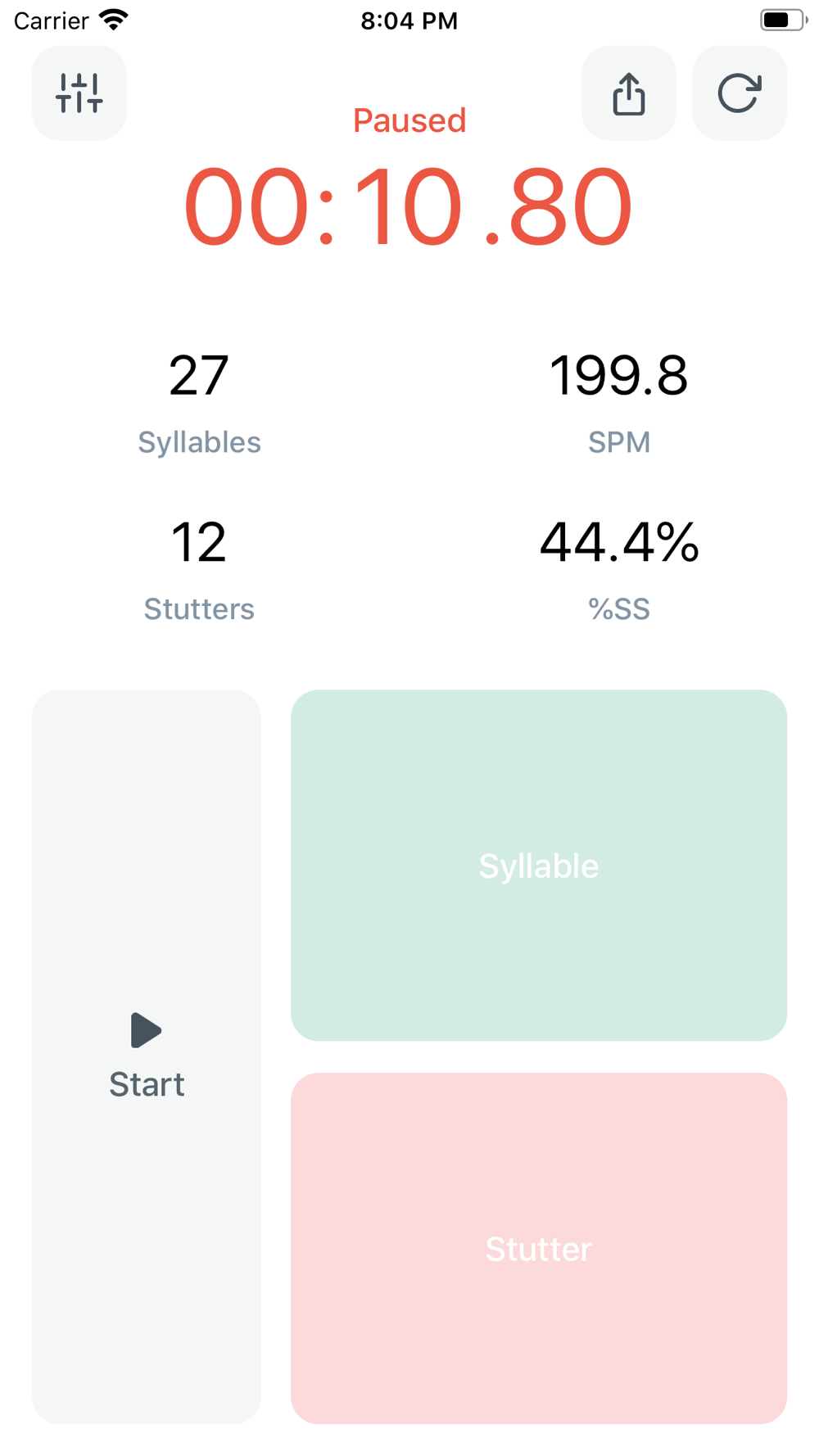 Fluency is a simple, easy to use fluency calculator that quickly and accurately measures syllables per minute and the percentage of syllables stuttered. This tool is great for speech pathologists or parents of children with disfluency.