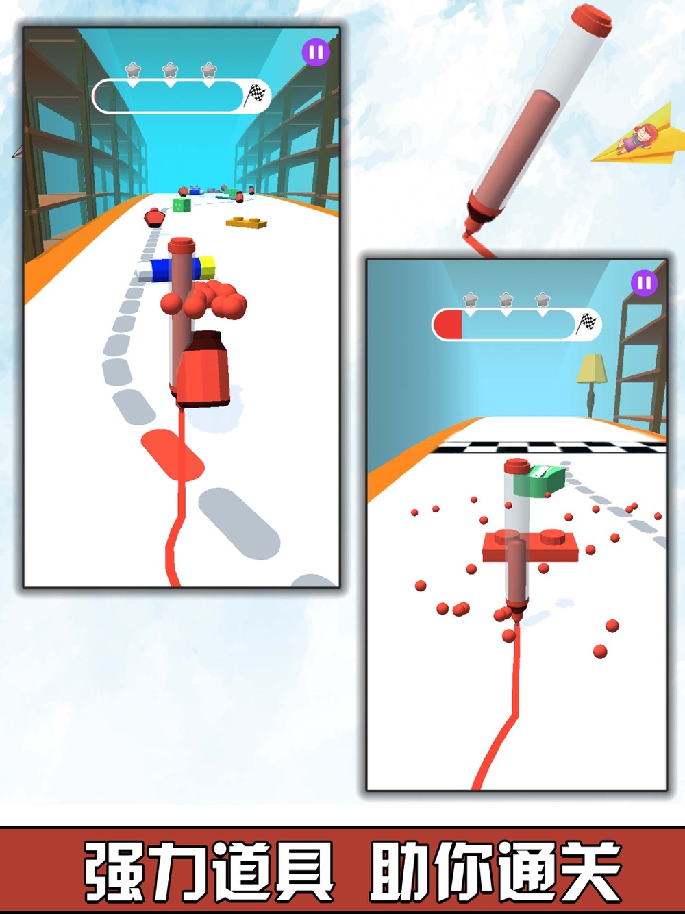 我们的目标是避开障碍物并收集墨水以保持绘图直至到达终点线!