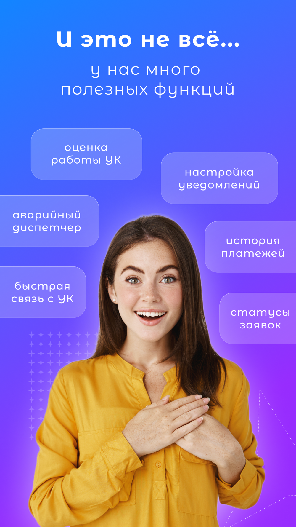 • Получать оповещения об отключениях воды, плановых работах и других важных новостях вашего дома.
