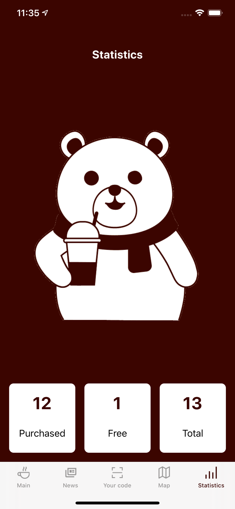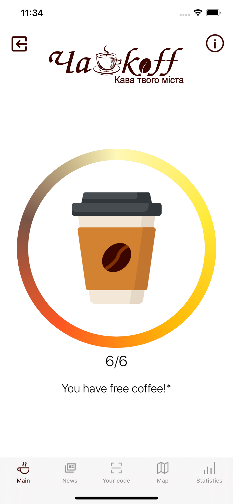 3) after buying 6 cups of coffee, you will automatically be accrued by a free cup of coffee, which you can pick up at any time and at any of the points of the Chaikoff coffee shops.