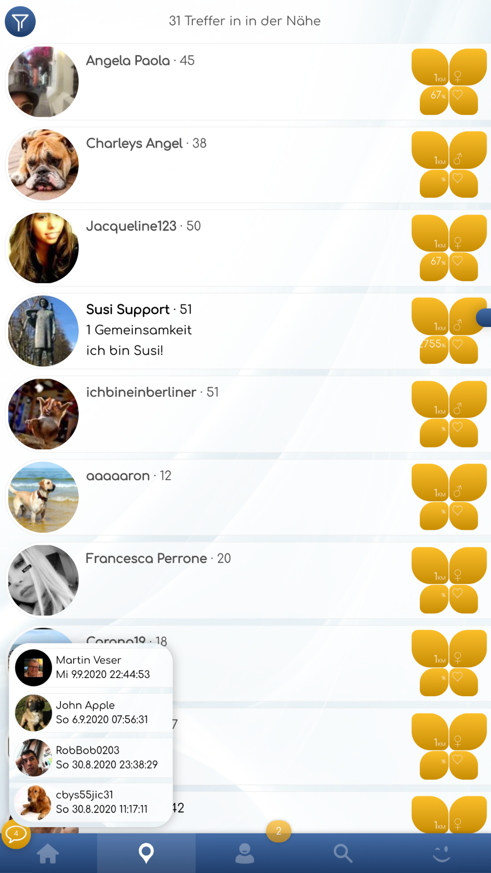 * Bluetooth Matching zeigt zu Dir passende Menschen in Deiner unmittelbaren Umgebung