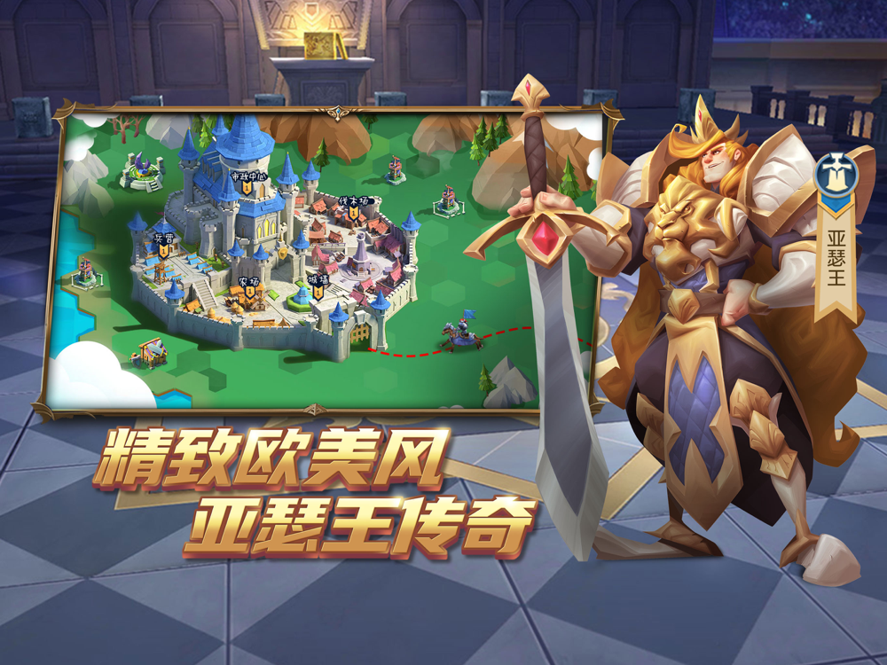 欢迎来到西方魔幻世界!【拔剑称王】是一款以亚瑟王为题材的战争策略手游,在这个全球匹配的西方魔幻世界,燃爆的音乐和战斗场面将伴随您在每局50小时的时间内运筹帷幄!巧取猛攻,直捣敌军部落,统一这片魔幻大陆!