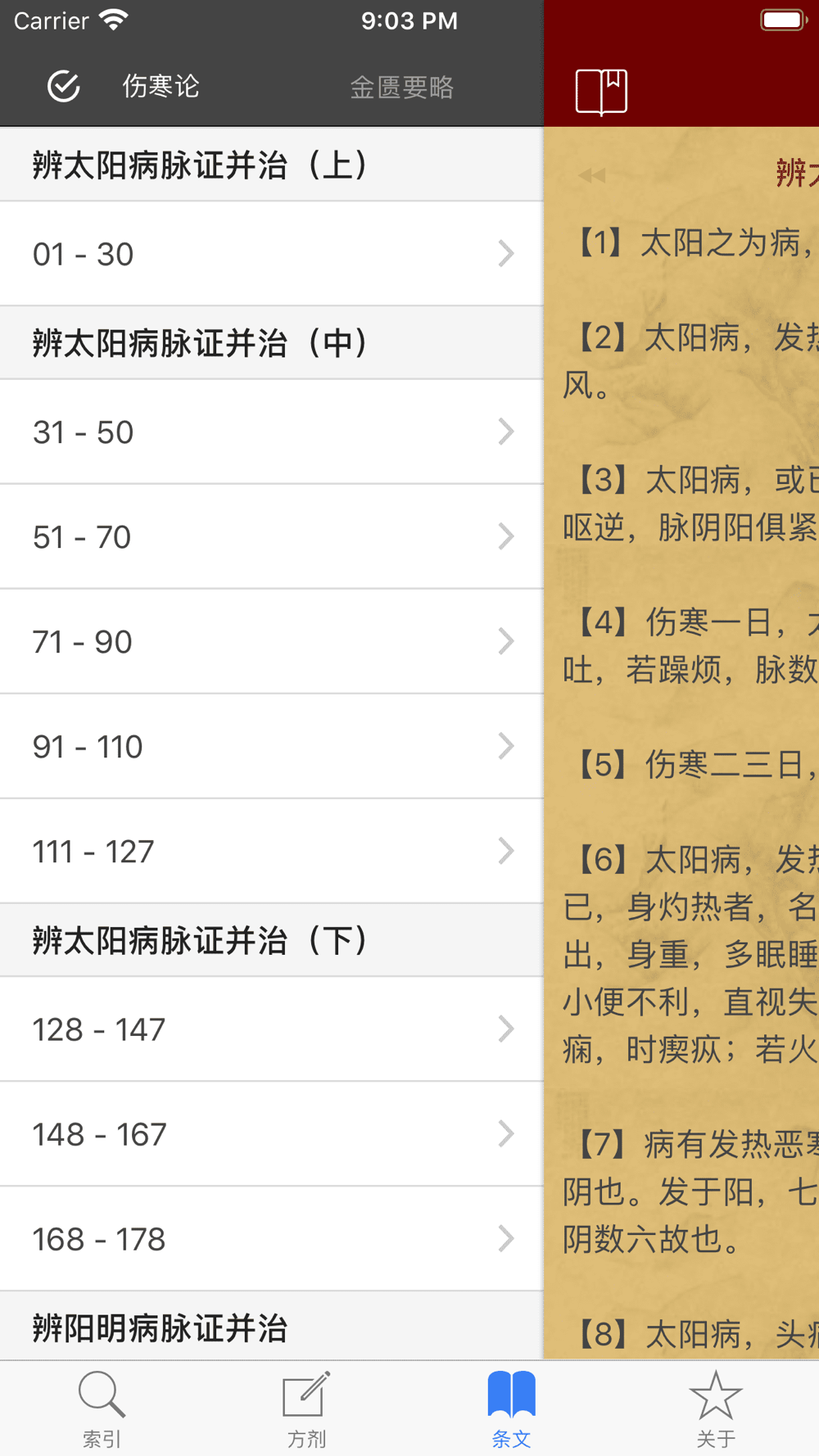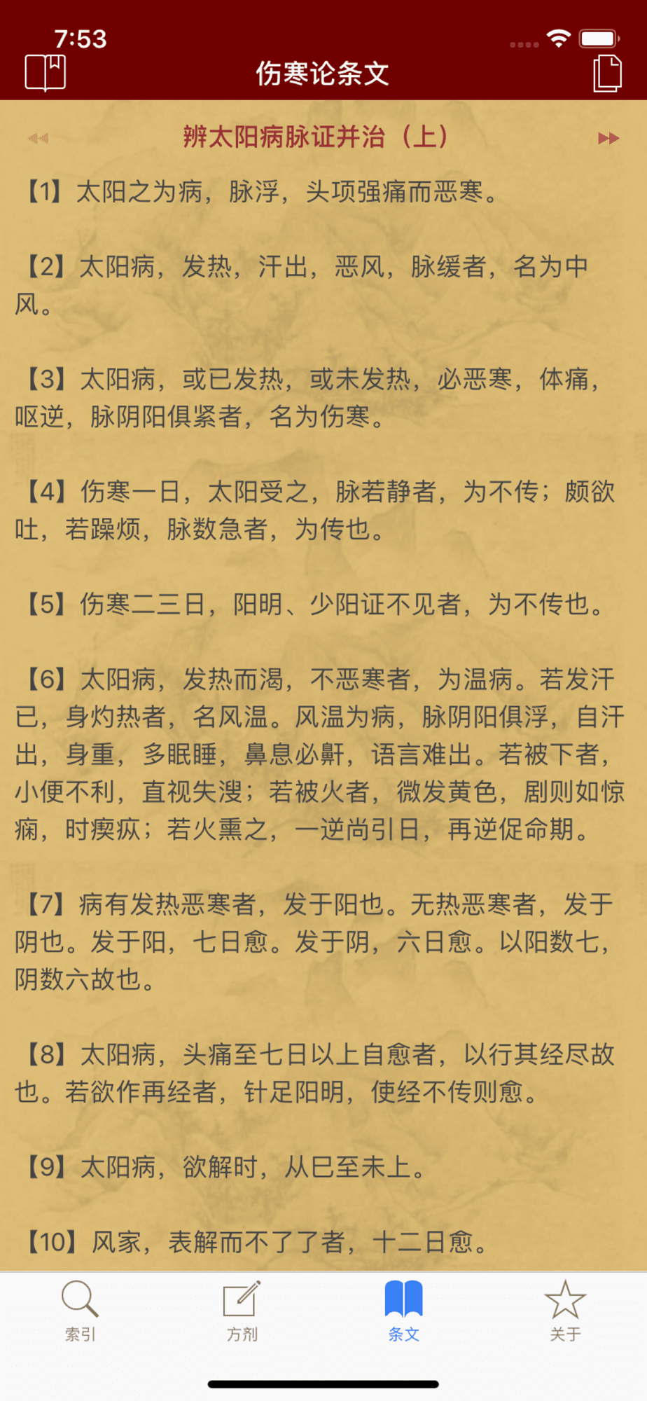 应用也提供了伤寒论与金匮要略的全部条文,为了尽可能保证条文的精确性,作者以人民卫生出版社的为底本,并结合其他出版社版本与网络版本,对每一条文逐一重新做了校对。