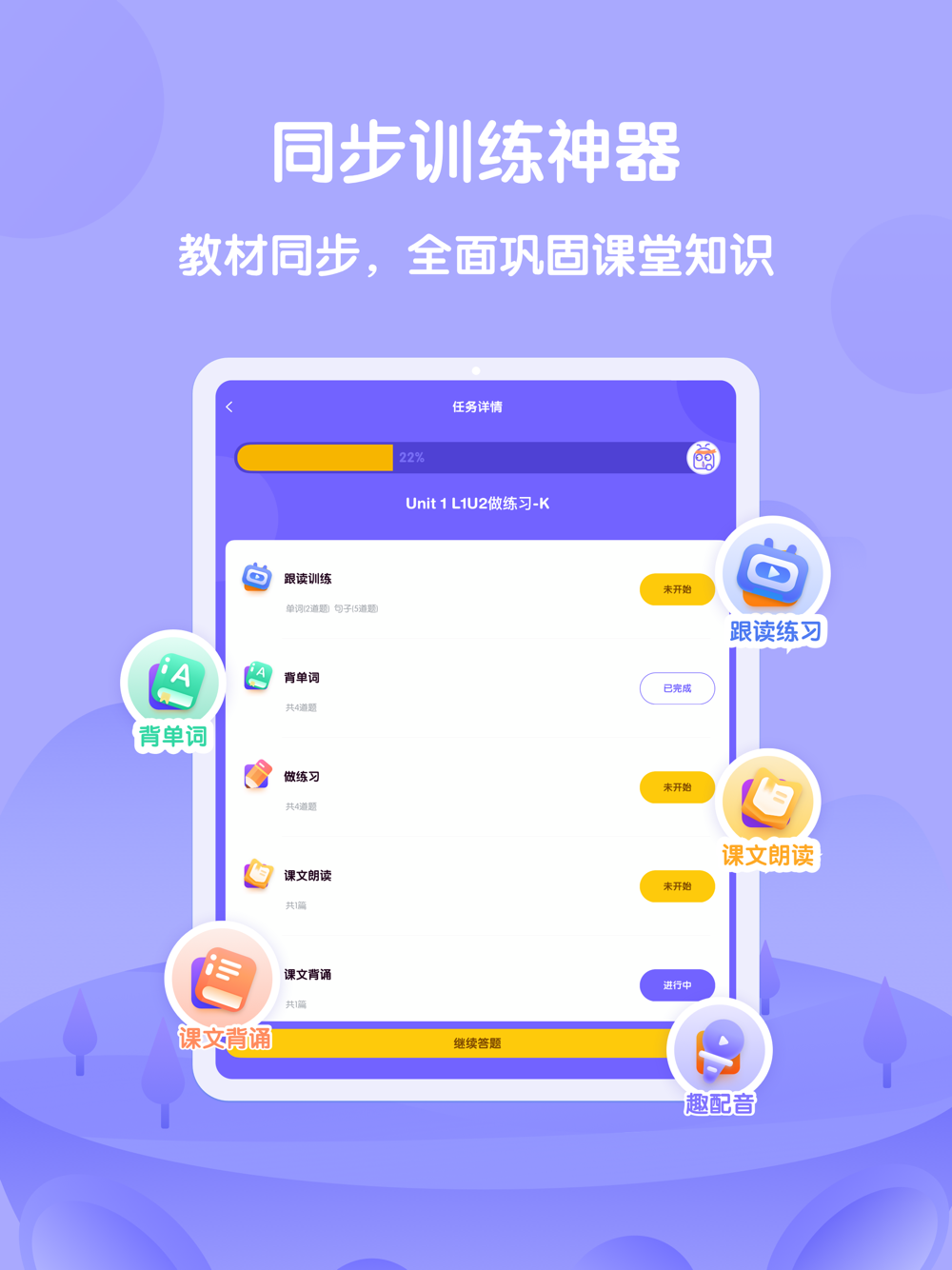 教材同步,全面巩固课堂知识。多样练习,实用、生动又有趣。