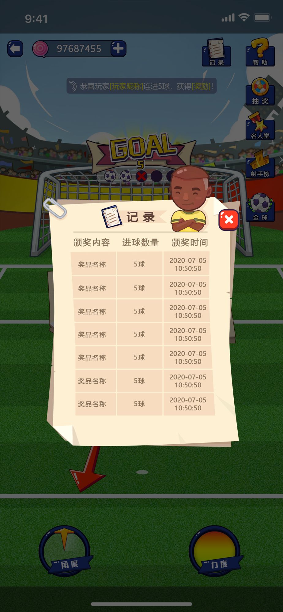 在最后的几个钟内,双方还是没有进球,比方还是持平,那就只有进入世界杯点球大战了,现在就让你来体验参与点球大赛现场。这紧张的比赛氛围让人揪心不已,现在你必须顶住压力,破门得分,站上世界之巅!