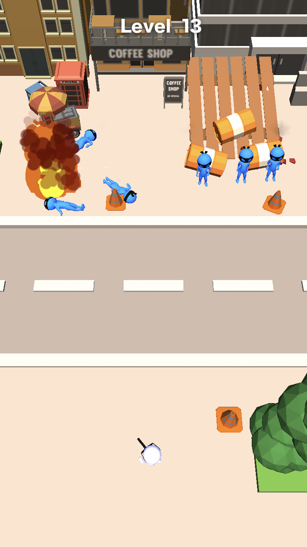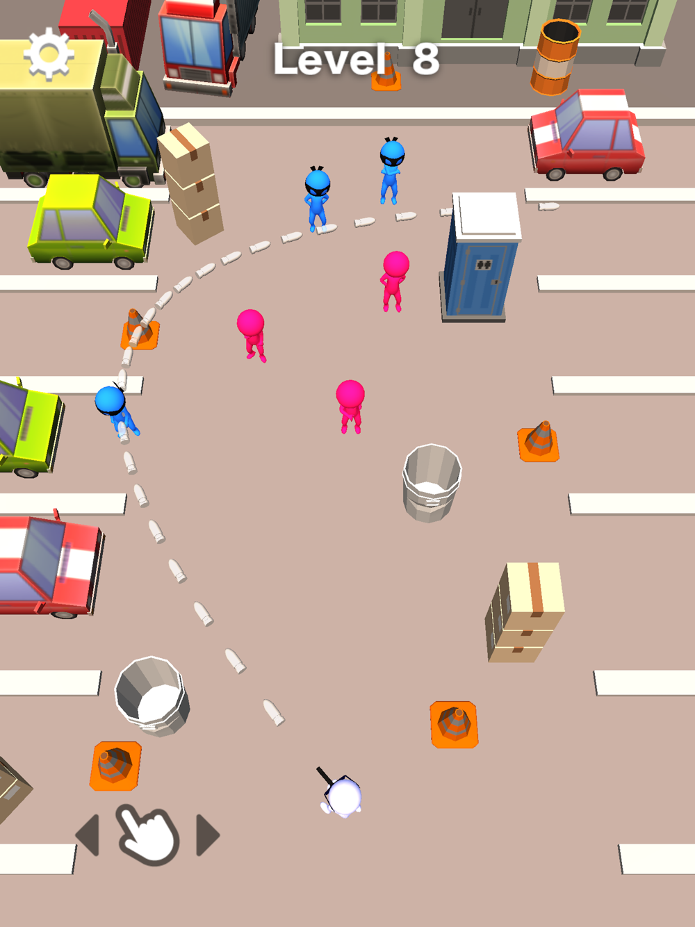 If you accidentally shoot through the civilians (pink ones), you will fail.