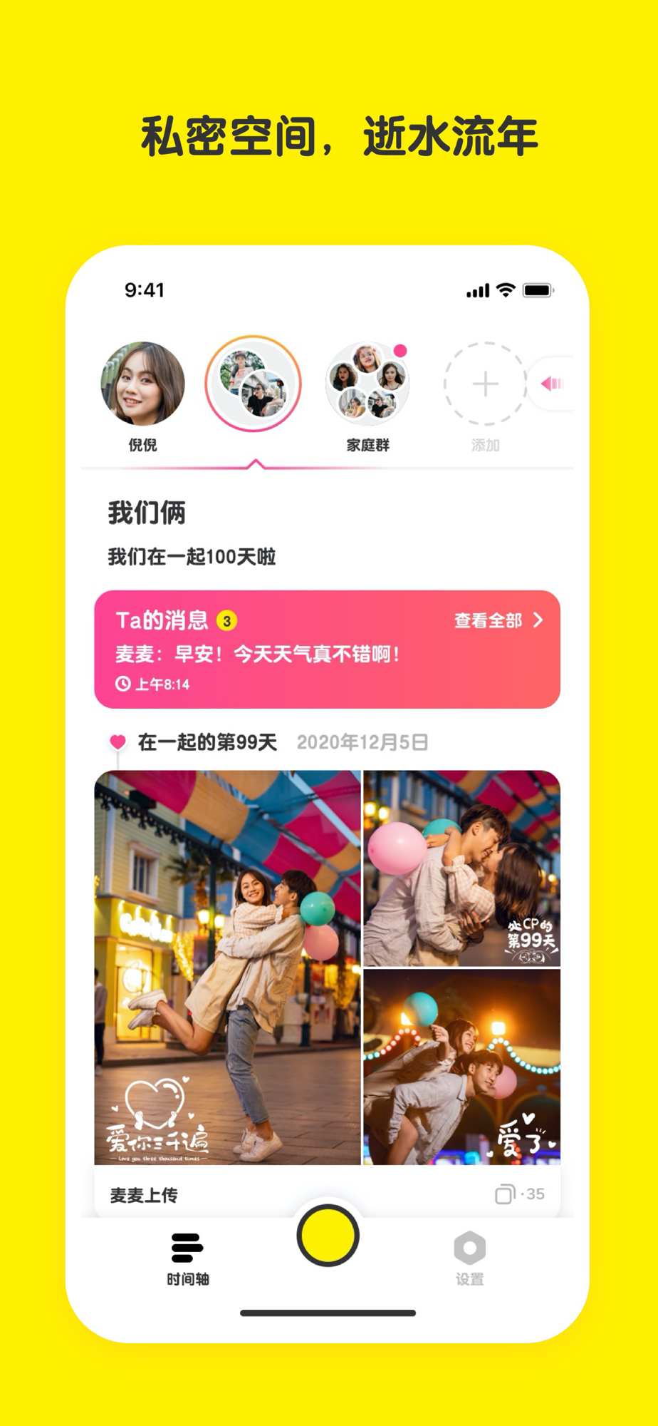 - 支持群聊互动。针对所拍摄的瞬间,及时开启热聊。分享的魅力绝不仅一张图片,更是互动带来的羁绊。无论是亲密关系间的甜言蜜语,还是亲朋好友间的欢声笑语,实时聊天、实时互动。让感情因为分享持续升温。