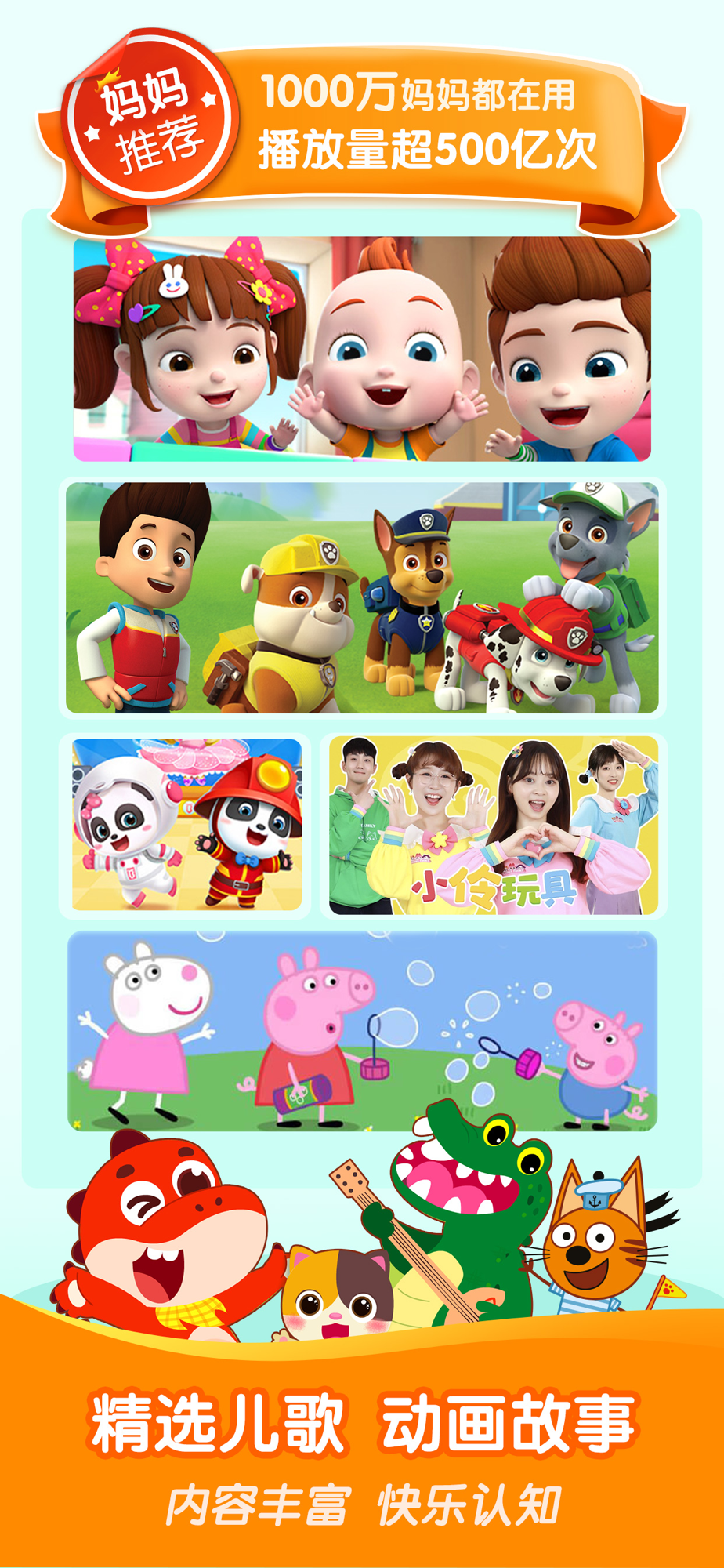 适合儿童的画风设计,简单易上手,听儿歌看动画不费劲。
