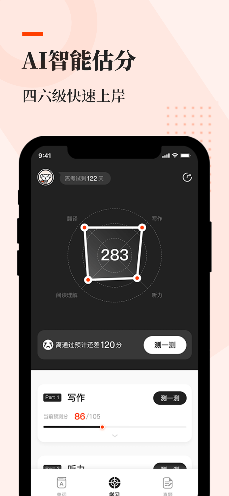 「用户推送」个性化,做你的学习小贴士「大纲词汇」增至单词页,丰富你的记忆单词库「直播频道」加入底部栏,一起来解惑答疑吧「听力解析」支持查看材料,不怕听不懂啦「真题」每年开放一套,会员权益更多样「我的」增加报错功能,欢迎留下你的宝贵建议~