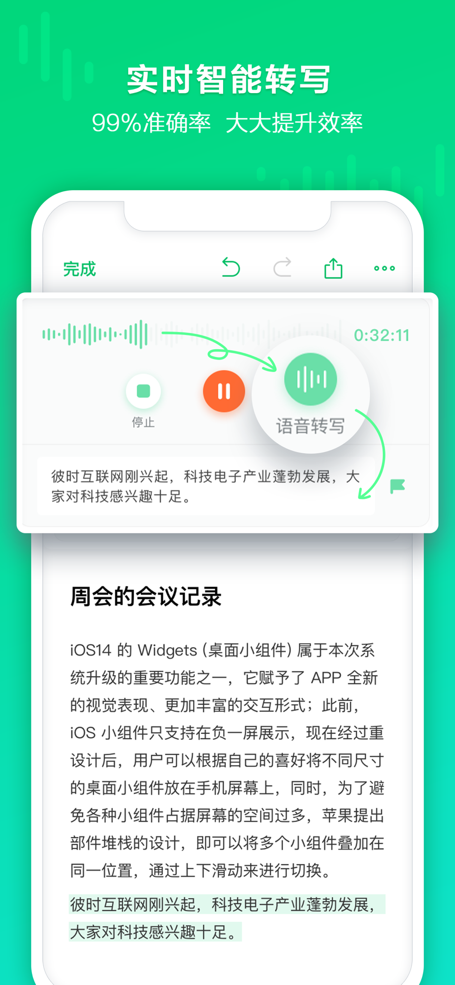 -实时转写:高转写准确率,语音到文字,听到即看到